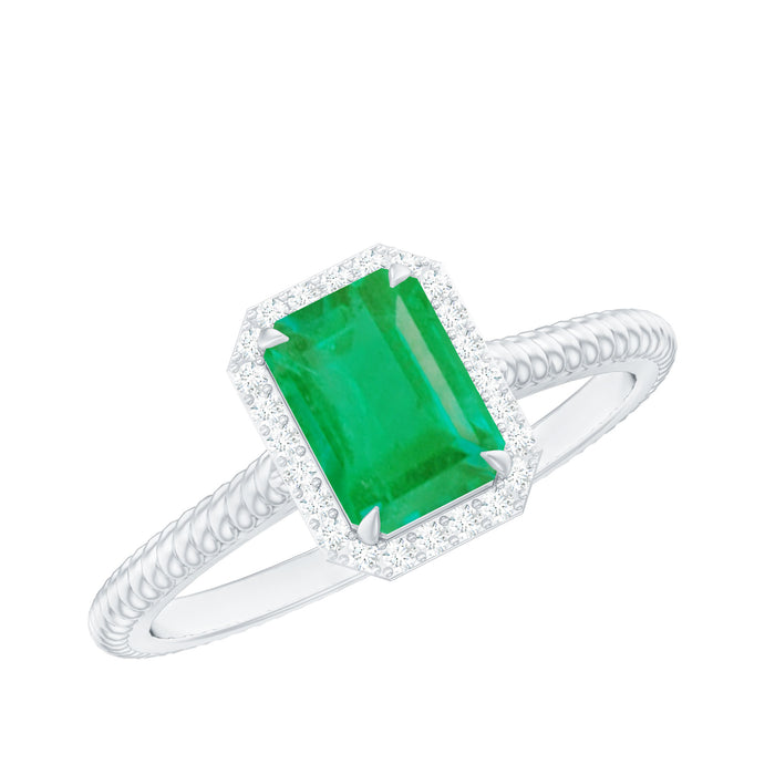 Embrace the elegance of a love that lasts forever with this Emerald Engagement Ring, a piece designed to capture hearts and turn moments into memories. At its center lies a 5X7 mm Emerald cut Emerald set in Claw Setting, radiating a deep, mesmerizing green that symbolizes growth, harmony and unwavering devotion. Surrounding the AAA Quality Emerald is a Halo of sparkling Diamond stones, each carefully set to amplify the brilliance of the gemstone and create a dazzling frame that catches the light from every angle. The Twisted Rope Band adds a touch of modern artistry while honoring classic design, weaving together strength and beauty in a way that mirrors the bond between two people. Perfect for proposals, engagements or marking a cherished milestone, this Emerald Cut Engagement Ring comes in a signature jewelry box, ready to make the moment unforgettable. Available in multiple ring sizes, this Emerald Diamond Engagement Ring allows you to choose the perfect fit for your loved one. This Halo Engagement Ring with Emerald is a promise, a celebration and a treasure destined to be cherished for a lifetime.