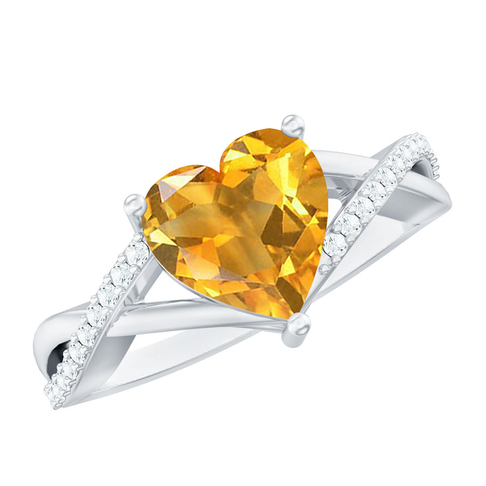 Surprise her with a ring that speaks straight from the heart and shines with emotion. This stunning Solitaire Engagement Ring features an 8mm Heart Shaped Citrine set in Prong Setting, symbolizing happiness, passion and deep connection. The romantic Heart Shape instantly captures attention, making this Citrine Engagement Ring a perfect choice for someone who loves meaningful details and bold expressions of love. The elegant Crossover Shank is adorned with delicate Diamond stones, creating a graceful flow that wraps around the finger like two lives coming together as one. Designed to feel both modern and sentimental, this Heart Engagement Ring balances playful romance with timeless elegance. Comfortable enough for everyday wear yet striking enough for the most unforgettable moments of life, this Citrine Diamond Ring is ideal for a proposal, anniversary or a surprise. The ring arrives beautifully presented in a signature jewelry box and is available in various ring sizes, making it easy to find the perfect fit. A beautiful symbol of eternal love meant to be cherished forever.