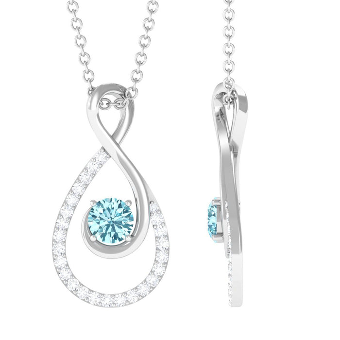 An eternal symbol of love and connection, this Infinity Pendant Necklace captures meaning and beauty in one graceful design. At its center rests a 4 mm Round Shape Aquamarine set in Prong Setting, glowing with a serene blue that feels calm and refreshing. The Infinity Knot gently wraps around the stone, representing endless bonds, while sparkling Diamond stones shimmer along the curves, adding just the right amount of sparkle. The combination of cool AAA Quality Aquamarine and the sparkling Diamond stones creates a look that is elegant yet easy to wear every day. Thoughtfully crafted for comfort, this Aquamarine Diamond Necklace is secured with a Lobster Clasp Closure so you can wear it with confidence from morning to night. This Love Knot Necklace pairs effortlessly with casual outfits, office wear or evening dresses, making it a versatile addition to any jewelry collection. This Aquamarine Pendant Necklace arrives in a beautiful jewelry box, ready to surprise someone special or to become your own meaningful keepsake. Perfect for anniversaries, birthdays or simply as a reminder of forever, this infinity pendant carries a message that never goes out of style.