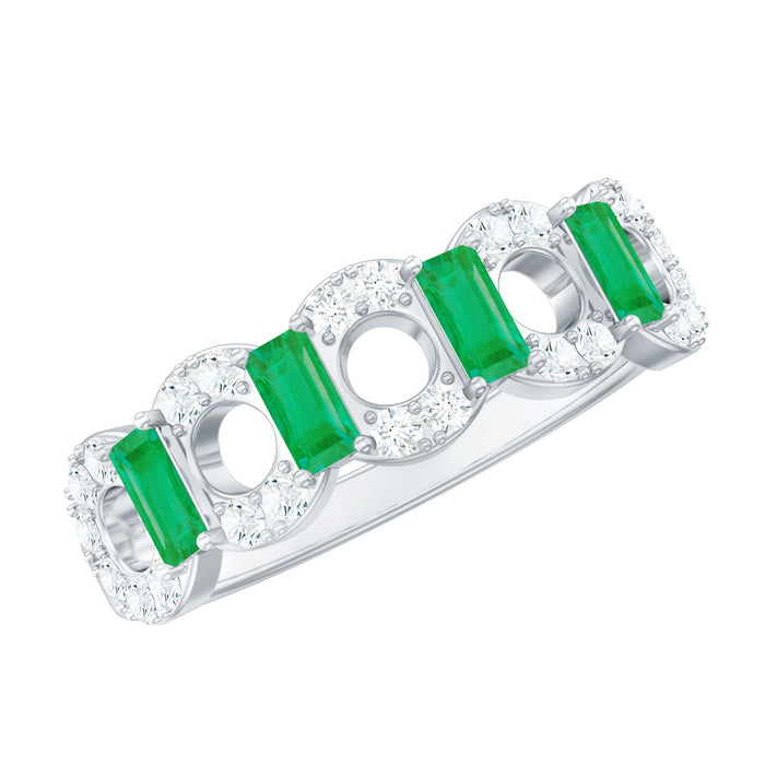 A dazzling symbol of devotion and elegance, this Half Eternity Ring is a perfect choice to celebrate timeless love. Crafted with meticulous attention to detail, its vibrant Baguette Shape Emerald stones shimmer alongside sparkling Diamond stones, capturing light from every angle and evoking the passion of enduring romance. Inspired by the geometric allure of Art Deco design, this Emerald Diamond Ring combines modern sophistication with vintage charm, making it a statement piece that transcends trends. Perfect for anniversaries, milestones or heartfelt surprises, this Baguette Emerald Ring arrives in a signature jewelry box, ready to dazzle your loved one from the very first glance. Whether it is a promise renewed, a celebration of shared memories or a spontaneous expression of love, this Emerald Eternity Ring whispers elegance, devotion, and timeless beauty. An eternal reminder that the most precious moments are meant to shine forever.