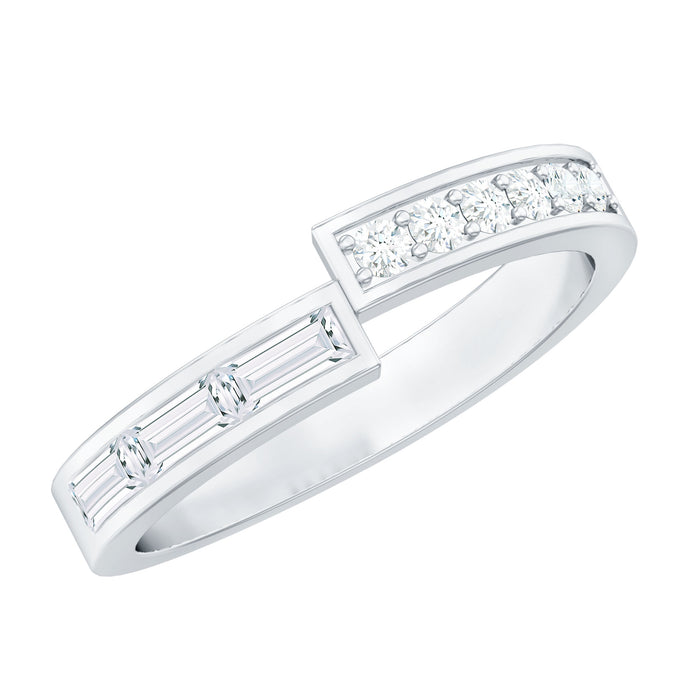 The band design focuses on a continuous line of diamonds set along the ring to create a harmonious flow of light. This arrangement enhances the natural sparkle of the stones while maintaining a clean and structured appearance. The result is a diamond band that feels timeless and versatile.