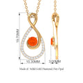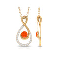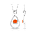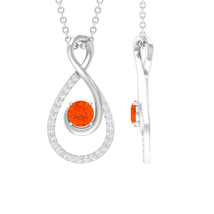 This elegant Fire Opal Infinity Pendant Necklace is embedded with a Round Shape Fire Opal in 4 Prong Setting while dainty Round Diamonds studded on the infinity design and rabbit ear bail. The Fire Opal Pendant makes a captivating piece for you to wear with your favorite attires solo and also when stacked with other pieces.