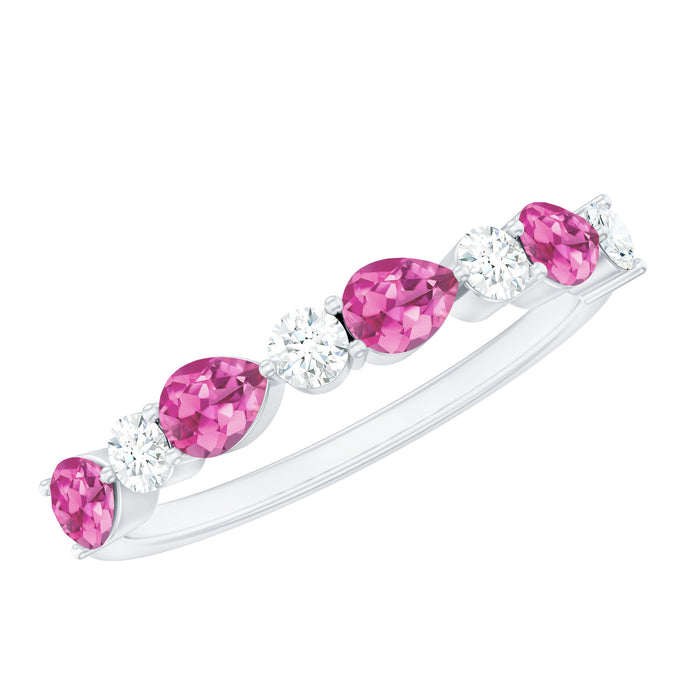 Soft romance meets classic sparkle in this beautifully crafted Half Eternity Band, made to celebrate moments that matter. Alternating pear cut pink tourmaline and round diamonds create a graceful pattern of color and brilliance, each stone held securely in prong setting. The gentle pink hue of the tourmaline pairs perfectly with the sparkle of real diamonds, giving the Stackable Eternity Ring a charming and feminine look. Designed in a half eternity style, this Pink Tourmaline Wedding Band offers comfort for everyday wear while still showcasing a luxurious row of gemstones. It stacks easily with engagement rings and other bands, making it a wonderful choice as a wedding band, anniversary ring, or stackable ring for creating your own personalized set. Whether worn alone for an elegant touch or layered for added sparkle, this Tourmaline and Diamond Ring adapts beautifully to any style. Perfect as a heartfelt gift or a personal keepsake, this Wedding Anniversary Ring brings lasting beauty, thoughtful design, and a touch of joy to every day.