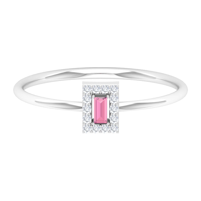 An Amazing and Dainty Promise Ring is embellished with Baguette Pink Tourmaline and Diamond Accent.