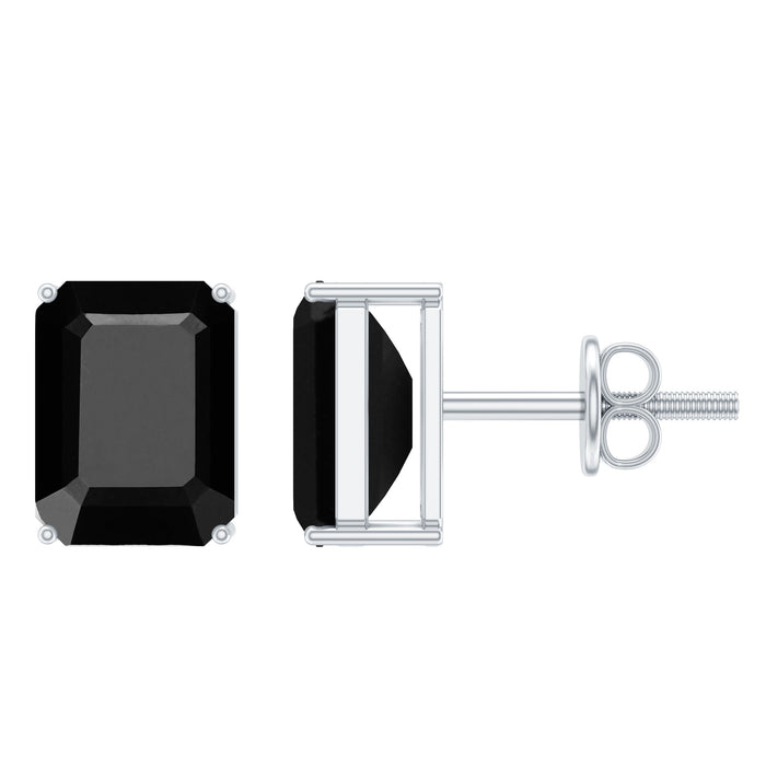 Sparkling with brilliance, these scintillating stud earrings feature an emerald-cut created black diamond set in a minimal prong setting, allowing light to radiate from every angle. The unadorned detailing on the sides adds to the elegant simplicity of the design. With screw-back backings, this contemporary yet timeless pair exudes a classic charm while retaining its modern sparkle.
