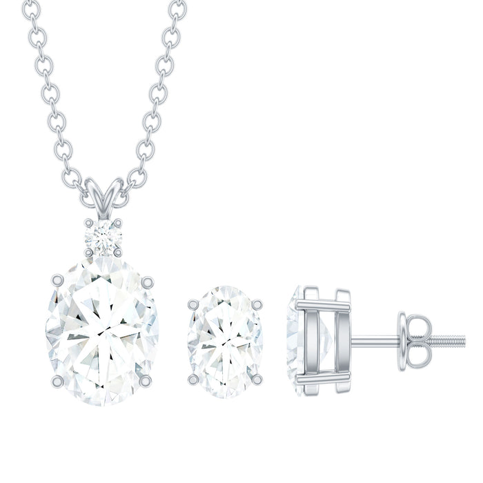 Shine with style in this Oval Necklace and Earrings Set, made for those who appreciate simplicity and elegance. The pendant showcases a beautiful 6X8 MM oval shaped cubic zirconia hanging from a fine chain, topped with a smaller round cz stone and a charming rabbit ear bail. The matching Stud Earrings feature a 4X6 MM oval cut zircon securely held in a prong setting and include a screw back closure. Crafted from 14k White Gold Plated Silver, this lightweight and versatile Cubic Zirconia Bridal Jewelry Set is ideal for any occasion, whether you are heading to work, enjoying a casual outing, or dressing up for a special evening.