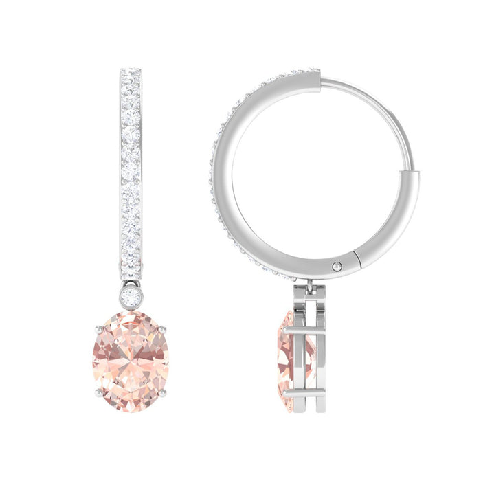 Jewelry has the power to be the one little thing that makes you feel unique. These Hoop Drop Earrings are embellished with Oval Cut Morganite and Round Shape Diamond in Prong Setting. These Morganite Earrings are highly customizable and allow you to choose your preferred metal color from the available options. Tell your story by wearing these Beautiful Hinged Hoop Earrings.