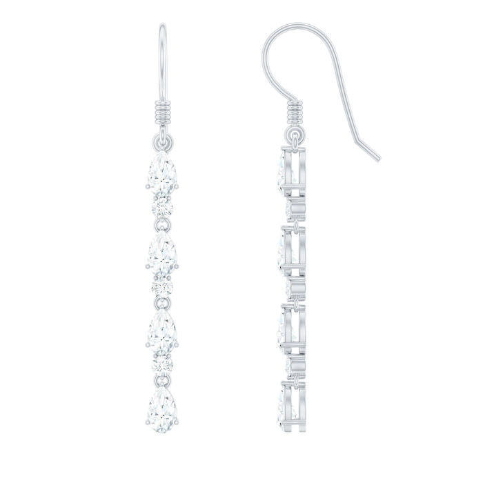Elevate your look and exude affluence with our shimmering Moissanite Dangle Earrings. These exquisite Long earrings feature pear and round cut Moissanite set alternatively in prong setting. Crafted from high-quality metal, these Moissanite Earrings are the perfect accessory for any beautiful woman who wants to showcase their unique style and elegance. Add this attractive piece of jewelry to your collection and enjoy its timeless beauty for years to come. These Hanging Moissanite Earrings are perfect for special occasions, evening events, weddings, or simply adding a statement to your look. Crafted with care and attention to detail, the secure fish hook closure ensures comfortable wear throughout the day or night. These Wedding Earrings for Bride blend elegance with meaning, making them a stunning addition to any jewelry collection. Your purchase comes with a quality assurance certificate and is beautifully packaged in a stylish, protective box, perfect for gifting or safe storage when not in use.