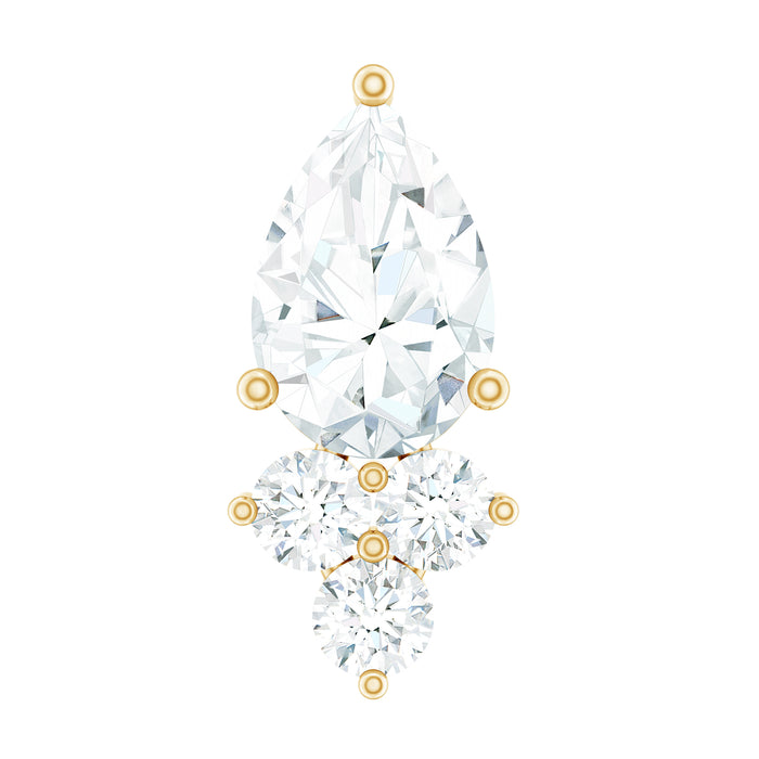 The Moissanite Cluster Cartilage Earring is embellished with Pear and Round Cut Moissanites secured in Prong Setting, crafted with Hallmarked Gold. It is both elegant and modern, making it a perfect accessory for any occasion. Whether youre looking to add some glamour to your everyday style or elevate your formal attire.