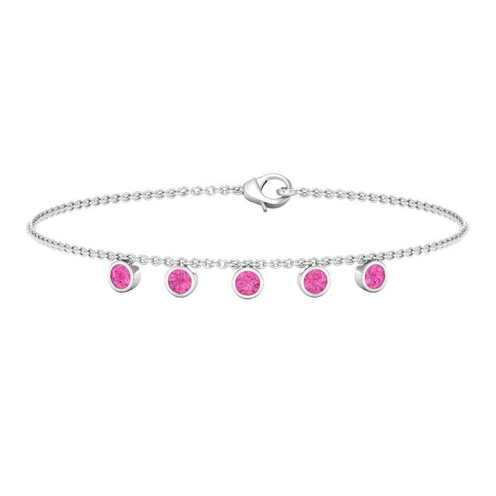 This Sapphire Chain Bracelet serves as the ideal accessory to ensure you shine like a star at any evening event. This exquisite piece showcases delicate round cut Pink Sapphire gemstones that are meticulously arranged along the chain. The bezel setting secures the stones, enabling them to capture maximum light, which significantly enhances their sparkle and introduces a modern touch. This Pink Sapphire Bracelet is designed with a secure lobster clasp, guaranteeing a safe and comfortable fit for all-day wear. It represents love, strength, and inner brilliance, making it a considerate gift for yourself or a loved one. It is lightweight and versatile, providing just the right amount of sparkle without being overpowering. You can wear this Layering Bracelet alone for a minimalist appearance or stack it with another bracelet for a striking statement; in either case, it will provide you with the perfect style to shine on any occasion.