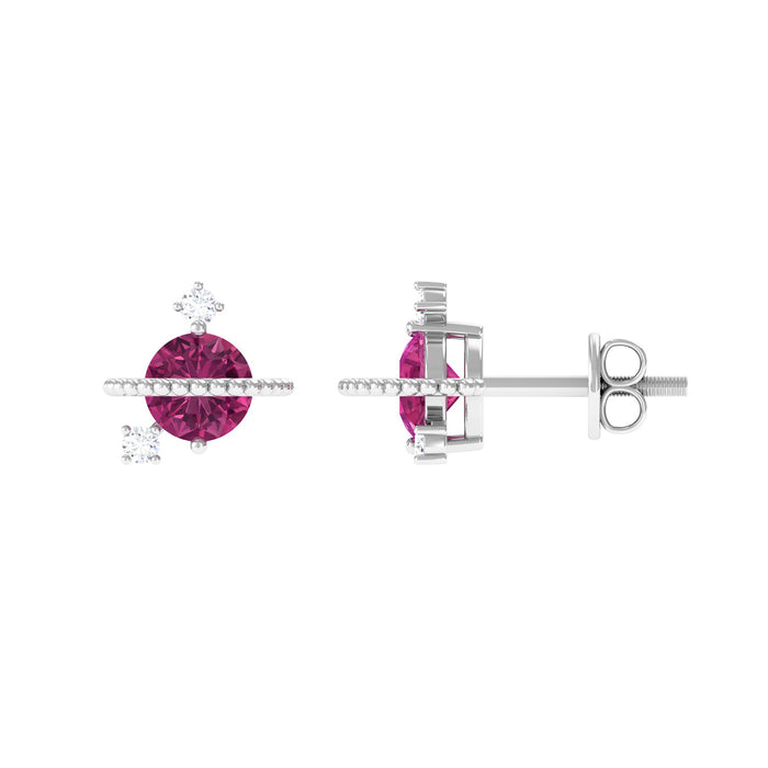 Add a celestial touch to your style with these Pink Tourmaline Celestial Stud Earrings. Sparkling Diamond enhances their enchanting and captivating design.