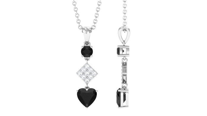 Grab this Heart Dangle Pendant showcasing Round and Heart Shape Black Onyx secured in Prong Setting while dainty Round Cut Diamonds add a touch of elegance and sparkle to the overall look. You can style this Black Onyx Heart Pendant with your special attire to get that wow look.