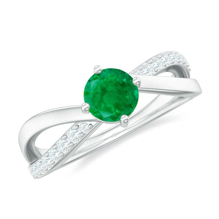 Eternal love finds its perfect symbol in this Emerald Promise Ring, a delicate yet striking piece that expresses your undying love. At its center is a 5 mm Round Shape Emerald set in 4 Prong Diagonal Setting, its lush green glow representing renewal, hope and the enduring bond between two souls. The Diamond studded Infinity shank gracefully loops around the finger, echoing the promise of forever, an endless journey of love, commitment and shared dreams. Thoughtfully designed to balance elegance with meaning, this Infinity Promise Ring is a heartfelt keepsake for moments that matter most. Its timeless design ensures it complements every style, whether worn daily as a personal reminder of devotion or presented as a gift to mark a cherished milestone. Delivered in a signature jewelry box and available in various sizes, this Emerald Infinity Ring is ready to become a treasured token of your bond, a sparkling reminder that true love has no beginning and no end.