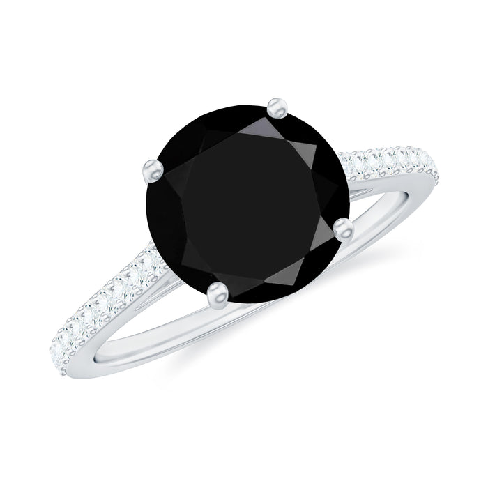 Mark a meaningful moment with this Black Onyx and Diamond Ring that blends simplicity, elegance, and significance. This Solitaire Engagement Ring features an 8 MM round cut onyx at its center set in basket setting. The design is thoughtfully balanced with small round diamonds set along the band, adding a touch of brilliance. The contrast between the dark AAA quality onyx and the sparkling HI-SI quality diamonds creates a timeless black and white pairing that feels both classic and fresh. Perfect as a December Birthstone Ring or a non traditional engagement ring, it is crafted to symbolize strength, clarity, and lasting love. Each detail of this Black Onyx Engagement Ring is carefully considered, from the secure setting to the graceful band, resulting in a piece that feels personal and special. Available in US sizes 3 to 13, it comes ready to wear or gift in a beautifully packaged box. Elegant, meaningful, and designed to last, this Black Onyx Solitaire Ring is a beautiful way to honor your connection and your story.