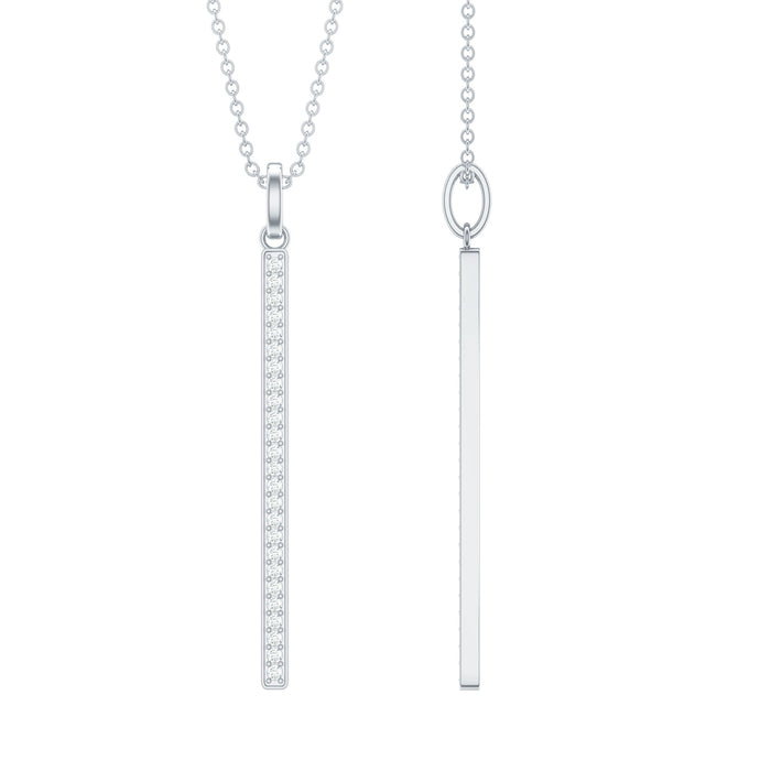 Your everyday elegance is all here to mesmerize you, with this Diamond Pendant Necklace. As a subtle, minimal and elegant design, this Necklace creates a classic and stylish modern look. It is adorned with Round Shape Diamond in Pinpoint Setting, on a vertical bar design. Having a classic shape, it has an Asymmetrical Diamond Bar Necklace that turns into an elegant standout piece of jewelry. Minimalist and modern, this Bar Pendant Necklace dangles through a chain and is an inspired addition to the jewelry collection. Its simple yet sophisticated design makes it perfect for adding a touch of sparkle to any outfit. Wear it alone to highlight it or layer it with other necklaces for more substance, shine and statement appeal. Spruce up with your elegance with this Vertical Bar Necklace, which is a sparkling treasure. This Long Bar necklace with sophisticated elegance is what you have been searching for.
