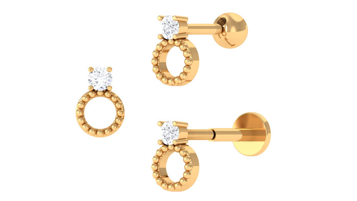 This Tragus Earring is a perfect expression of unique style with its shimmering Round Cut Diamond in Prong Setting. The beaded design adds extra charm and makes it stand out from ordinary jewelry. Wear this Tiny Stud Earring on your Conch, Helix, Upper Lobe, or Cartilage Piercings and the Flat Back Closure will keep it securely in place.