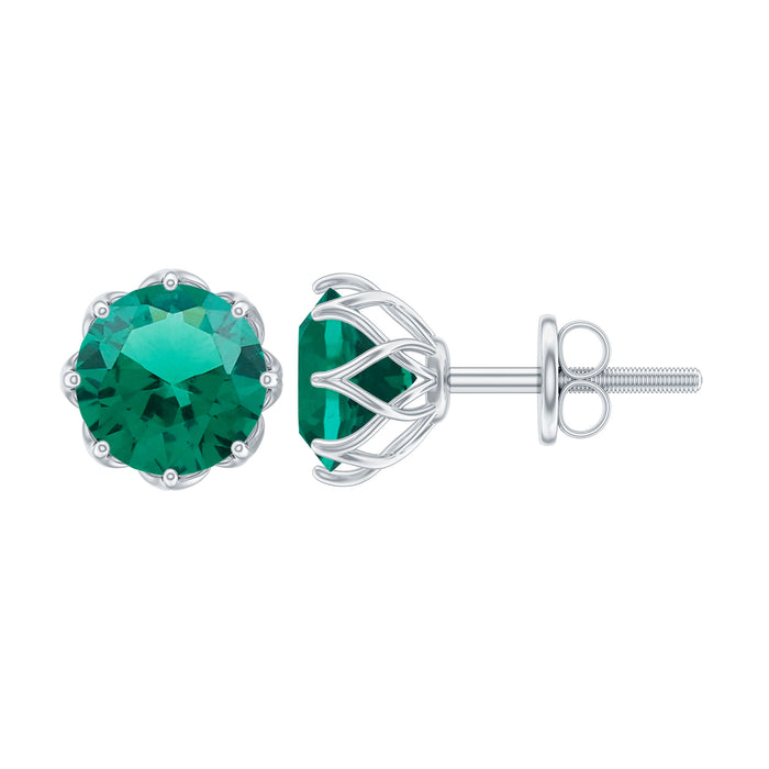 A touch of green elegance can brighten any day, and these Emerald Stud Earrings are the perfect example of timeless beauty and simplicity. Each earring features a 6 MM round cut lab created emerald, set in decorative setting that allows the stone to shine brilliantly from every angle. The simple design gives them a modern charm while keeping these Solitaire Emerald Earrings versatile enough to pair with any outfit. Whether you are dressing up for an evening out or keeping things casual, these Round Stud Earrings bring just the right amount of sparkle and color to your look. Crafted for comfort and durability, the Emerald Green Earrings come with secure screw back closures that ensure they stay safely in place all day long. Made with AAAA quality lab created emeralds, they offer stunning beauty in an ethical and eco-friendly way, giving you both elegance and peace of mind. Presented in a beautiful jewelry box, these Round Earrings are ready to gift for birthdays, anniversaries, or simply to treat yourself.