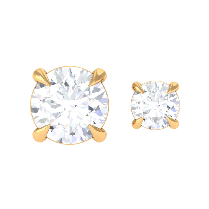 This Simple Moissanite Earring Set comprises two Round Cut Moissanite secured in Claw Setting, making it the right choice to flaunt on your Cartilage, Helix, or Upper Lobe Piercing. They can add just the right amount of sparkle to your ear and will never go out of style.