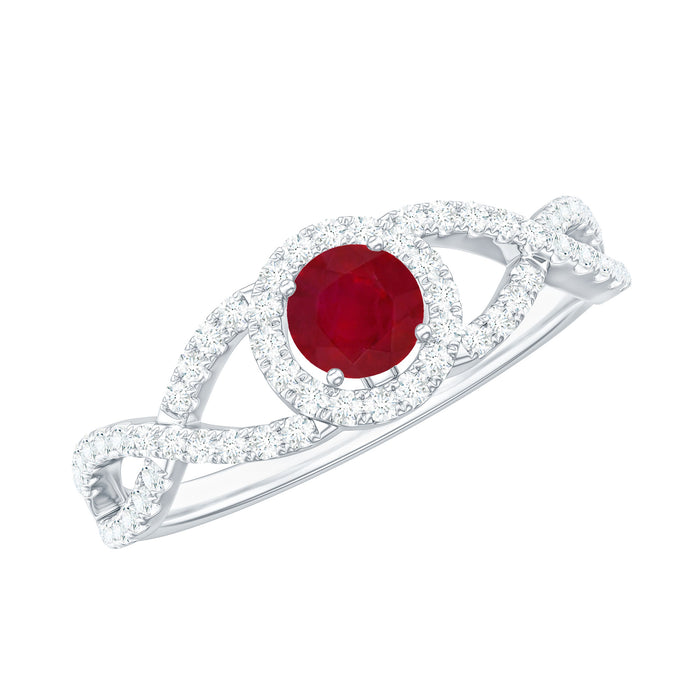 Add more sparkle to your big day with a symbol of love, this Ruby Ring is a beautiful connotation of love. Ruby Diamond Engagement Ring is adorned with Crossover Gold Shank, gives an enchanting appeal to the wearer. Get this Ruby Engagement Ring for your partner and make her feel elated.