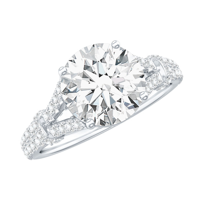 Celebrate your forever with a ring that captures the beauty of your bond and the brilliance of your love. This stunning Solitaire Engagement Ring features an 8 MM round cut Moissanite as the center stone, set in prong setting to maximize its sparkle. The brilliance and clarity of the stone give it a radiant, eye-catching glow, perfect for marking one of life’s most meaningful milestones. What sets this Moissanite Engagement Ring apart is its elegant split shank design, adorned with petite moissanite stones that add delicate shimmer and symbolism. The split shank represents two paths joining into one, beautifully reflecting your shared journey ahead. Additional stones are set gracefully along the bridge, creating a seamless trail of light that draws the eye to the center, your love story’s focal point. Modern yet timeless, this 2 carat moissanite ring brings together classic charm with a bold twist. Whether you are proposing, renewing your vows, or simply saying how much you love her, it is a piece that speaks louder than words. Arriving in a beautifully packaged jewelry box, this Split Shank Engagement Ring is ready to create an unforgettable memory.