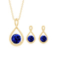 This Infinity Jewelry Set is the epitome of simple elegance, featuring a round-cut created blue sapphire solitaire in a prong setting. Both the pendant and earrings are crafted with solid gold, giving the set a luxurious appeal. With its minimalist design and high-quality materials, this solitaire pendant and earrings set is perfect for those who appreciate understated beauty in their jewelry.