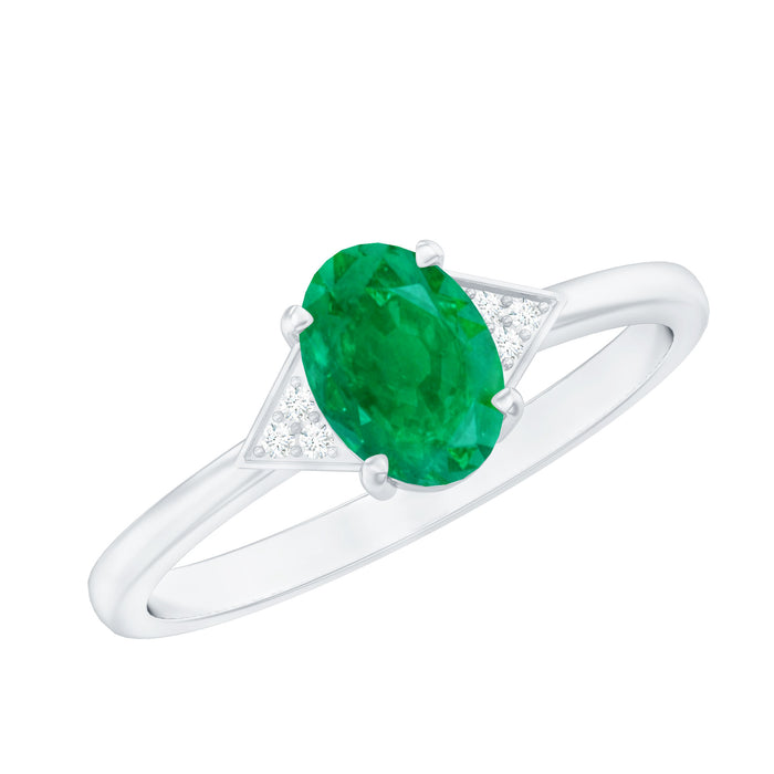 A moment of love deserves a ring that shines just as brightly, and this Solitaire Emerald Engagement Ring is the perfect choice to make it unforgettable. Designed with grace and care, this elegant piece features a stunning 5X7 MM oval cut emerald held securely in prong setting. Flanking the center stone are dazzling diamonds set on both sides of the main gem, giving the Oval Engagement Ring a radiant and captivating sparkle. This Emerald and Diamond Ring blends timeless design with modern charm, making it ideal for someone who appreciates sophistication and style. Whether it is for an engagement, anniversary, promise, or special occasion, this Emerald Proposal Ring beautifully expresses love and commitment. This beauty comes with a certificate of authenticity, ensuring genuine gemstones and expert craftsmanship. It is presented in an elegant jewelry box, ready to gift or treasure for yourself. Available in various ring sizes, this Oval Emerald Ring offers the perfect fit for every wearer.