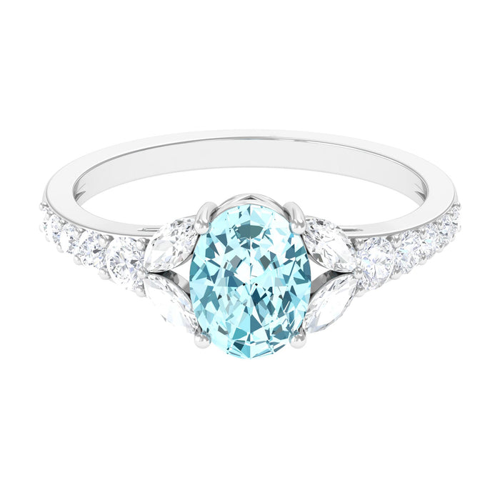 Indulge in the timeless beauty of this Oval Aquamarine Solitaire Ring, accompanied by Moissanite. A mesmerizing symbol of grace and sophistication.