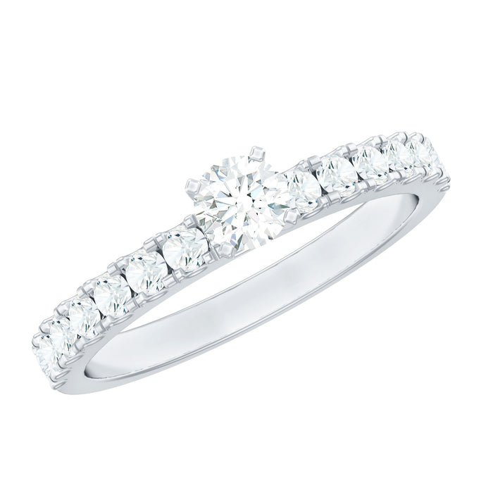 Glamorous Solitaire Diamond Ring is embellished with the precious Solitaire Round Shape Diamond and the small diamond is set in sidestone setting. Unique Solitaire Engagement Ring is mounted in 14K Two Tone Gold. A perfect statement ring is an ideal gift for your partner.