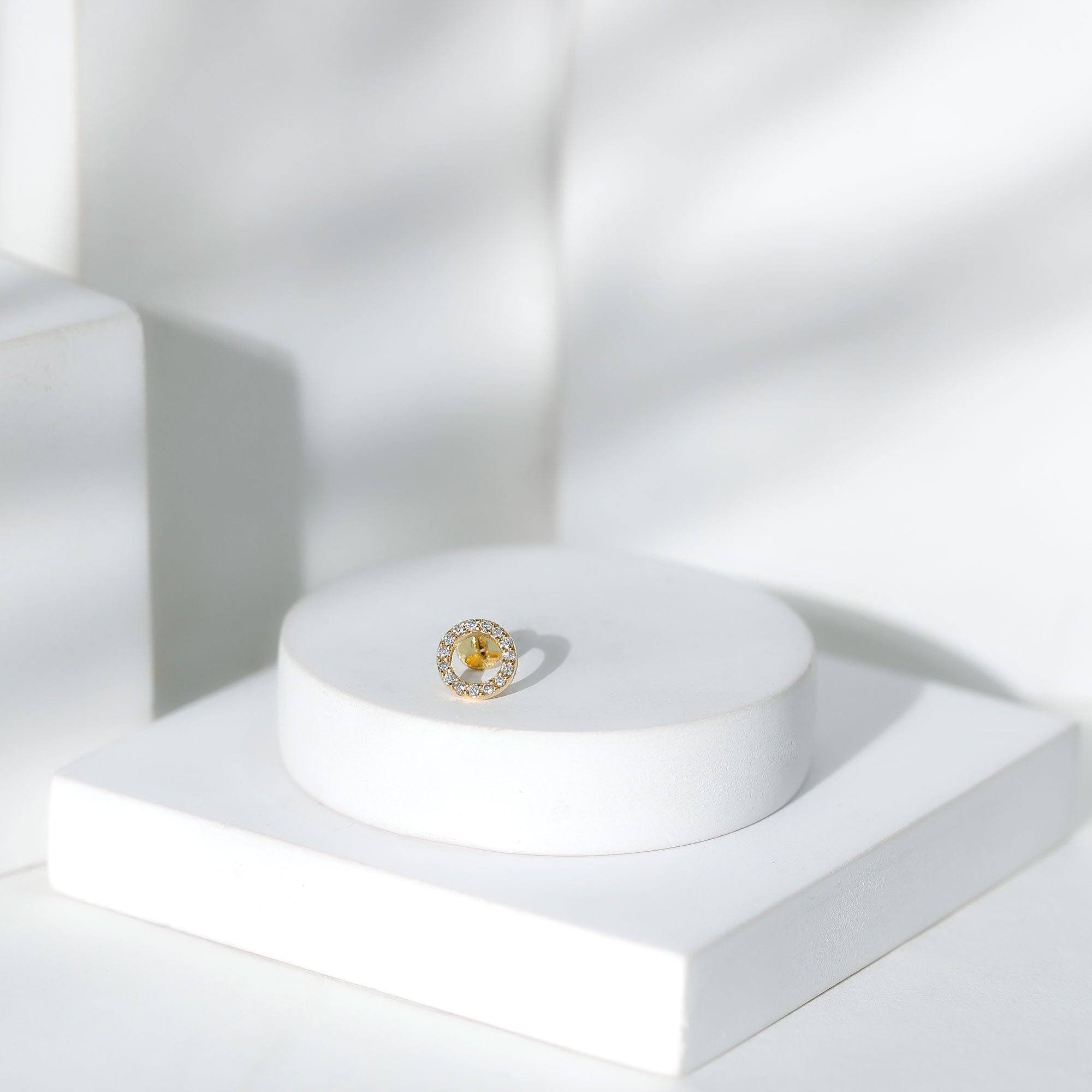 Simply stunning, this Diamond Open Circle Earring is a stylish way to upgrade your ear stack. Crafted in solid metal, featuring round diamonds in pave set on an open circle motif.