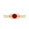 Make your statement style with this Unique Engagement Ring is adorned with Round Shape Ruby set as Solitaire and Round Shaped Diamond in Side Stones. Beaded Engraved design ring is a perfect gift for your loved ones.