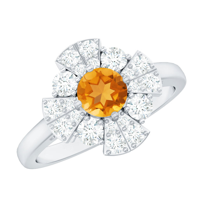 Cherish the beauty of timeless romance with this Flower Engagement Ring, designed for a love that feels both classic and unforgettable. At the center, a 5 mm Round Shape Citrine captures the warmth of golden sunlight, symbolizing joy, devotion and a heart full of promise. Surrounding it, delicate flower inspired details shimmer with Moissanite stones, adding a soft sparkle that feels elegant and dreamlike. The vintage style design carries a sense of history, as if the ring holds whispered love stories from the past while still feeling fresh and meaningful today. Every detail of this Citrine Engagement Ring is crafted to celebrate a connection that grows stronger with time. This Vintage Looking Engagement Ring is perfect for someone who loves romance with a touch of nostalgia and a lot of heart. Presented in a signature jewelry box and available in various ring sizes, this Yellow Citrine Ring is ready to mark one of the most unforgettable moments of life. It is a symbol of eternal love, blooming endlessly and a promise meant to be cherished today, tomorrow and for a lifetime to come.
