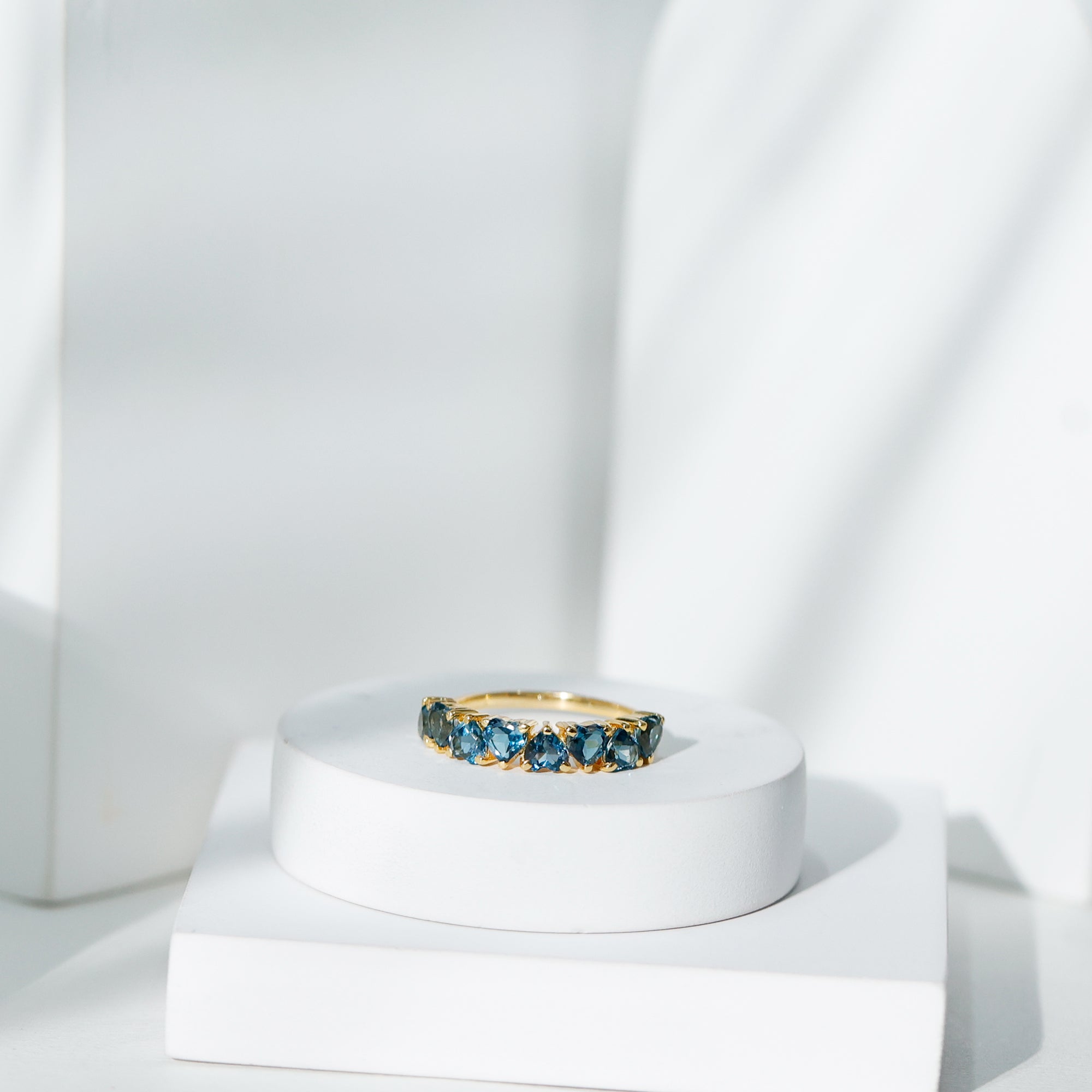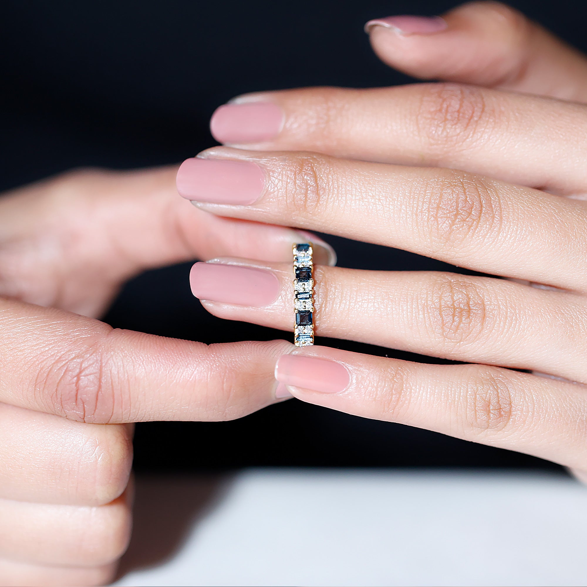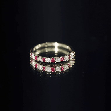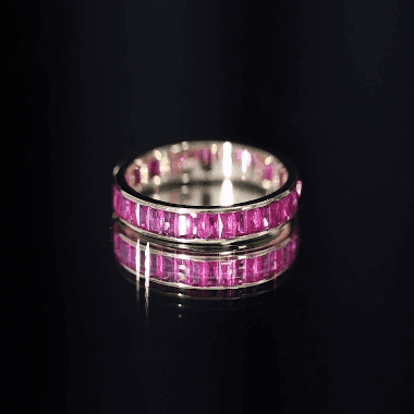 Eternity rings often have more gemstones, though they're smaller than those in typical engagement rings. Surprisingly, they may not always be more expensive. The cost depends on factors like size, weight, cut, and carat of the diamond and colored gemstone, which can be adjusted to fit your budget. You have the flexibility to decide how much you want to spend on an eternity ring, whether it's comparable to a solitaire or more budget-friendly.