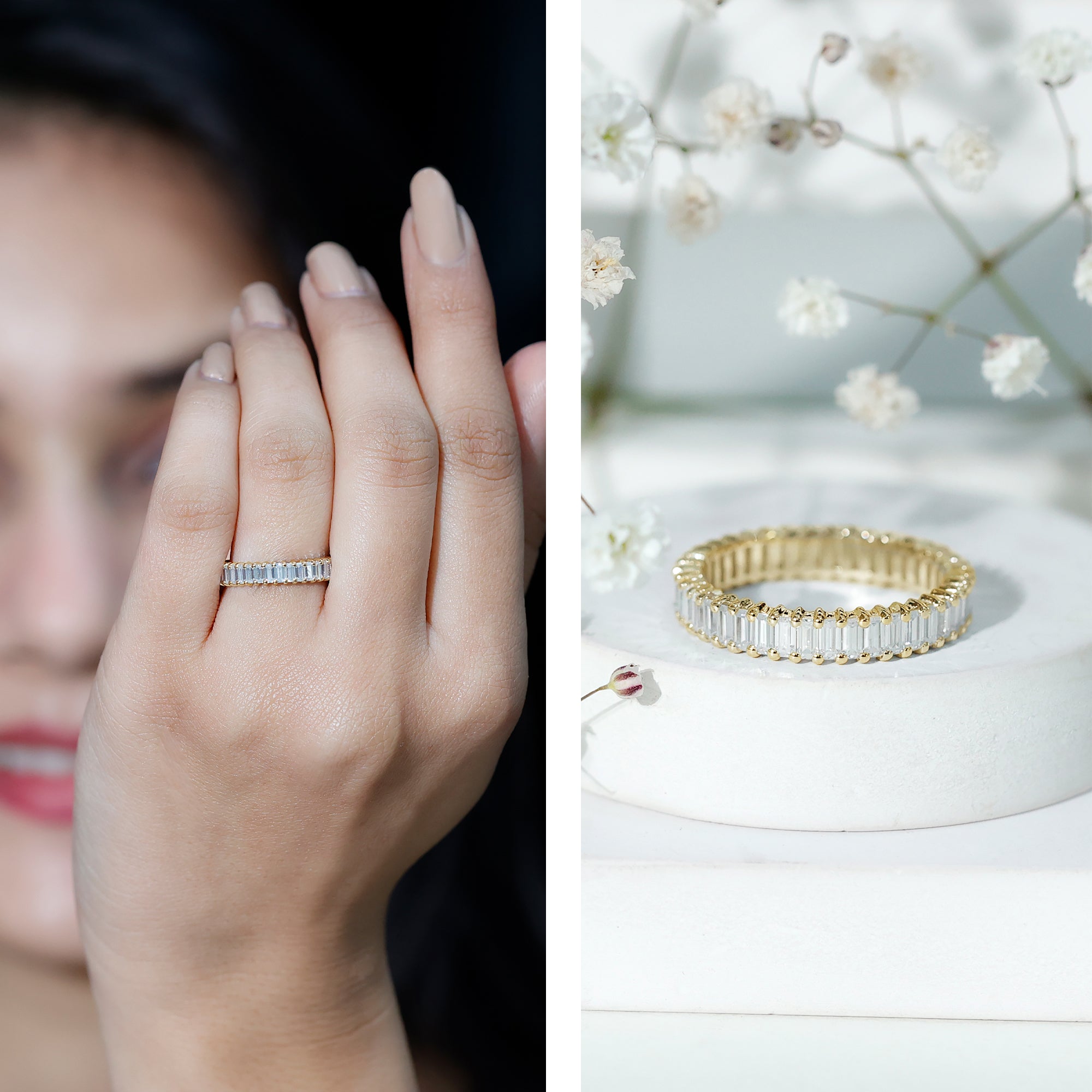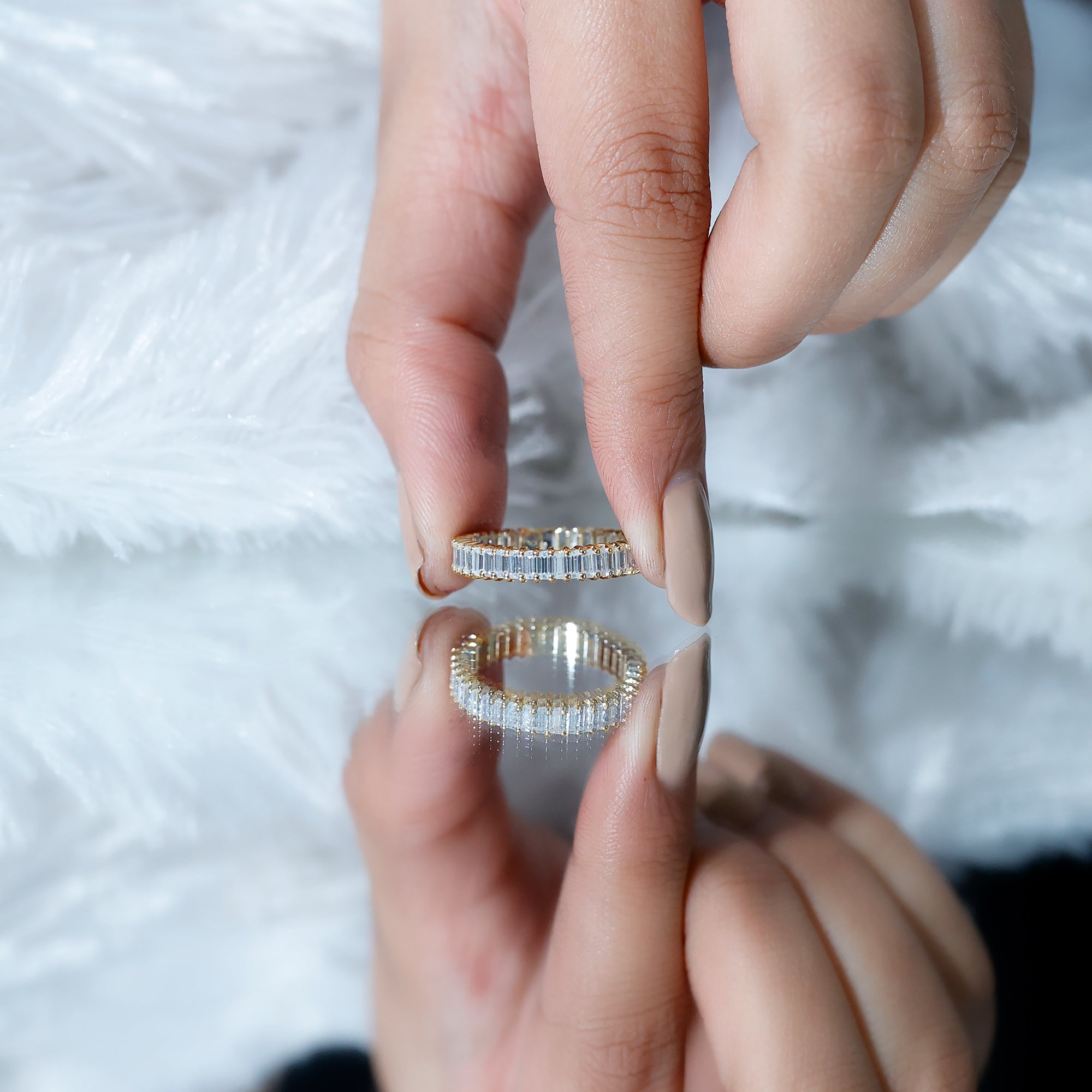 Exquisite Craftsmanship: Our eternity rings display the skillful work of talented artisans who carefully create each piece, guaranteeing a perfect blend of beauty and enduring quality.