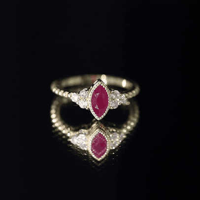 Ruby rings are available in solitaire, halo, three-stone, and vintage-inspired styles. Solitaire designs emphasize the natural depth of the center stone, while halo settings introduce surrounding brilliance for added dimension and protection.