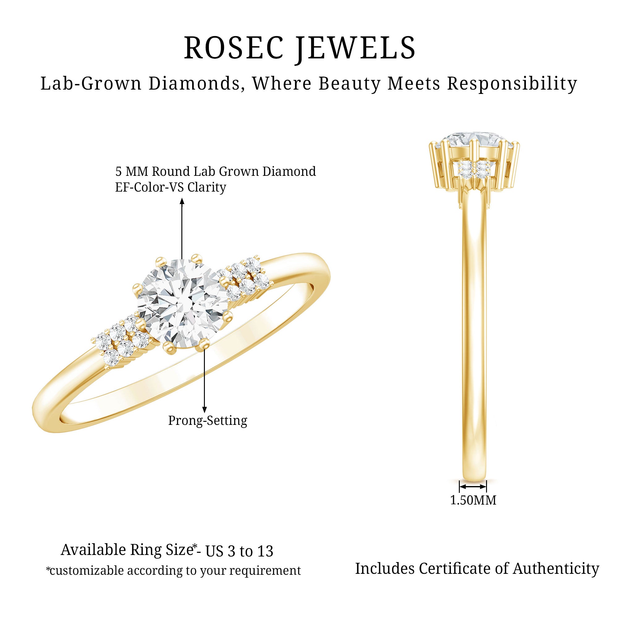 Rosec Jewels, is well known for its experience and wide catalogue of handcrafted engagement rings to suit every style and budget. We keep our collection updated with the trending and inspiring pieces like solitaires and statement rings to designer and minimal pieces. Our round engagement rings feature everything from classic diamonds and moissanites to colored gemstones, both natural and lab-grown. Our high-quality certified gemstones undergo strict quality checks for their authenticity. We have a simple 60-day return policy for complete peace of mind and our fast, reliable shipping ensures that your ring arrives on time.