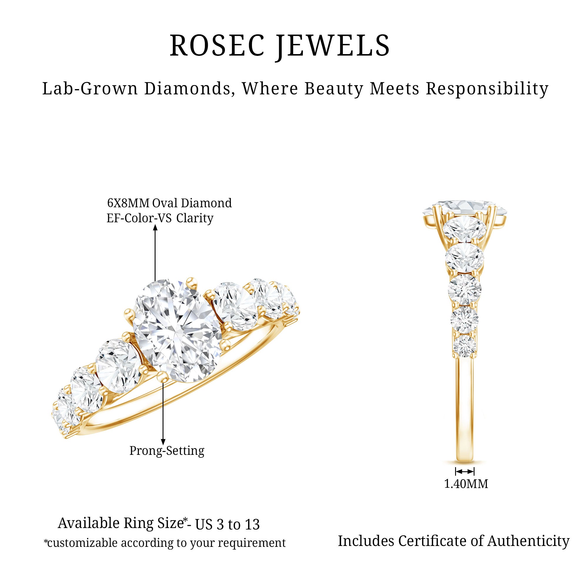 • Hallmarked Gold: The Gold we ornament each of your ring in has also been hallmarked. The hallmark on the gold reflects on the purity of the gold, which is expressed in terms of karats or fineness. It assures you of the genuineness of the gold. Please note that we only handcraft rings in 14K Gold since it strikes the perfect balance between durability and purity.