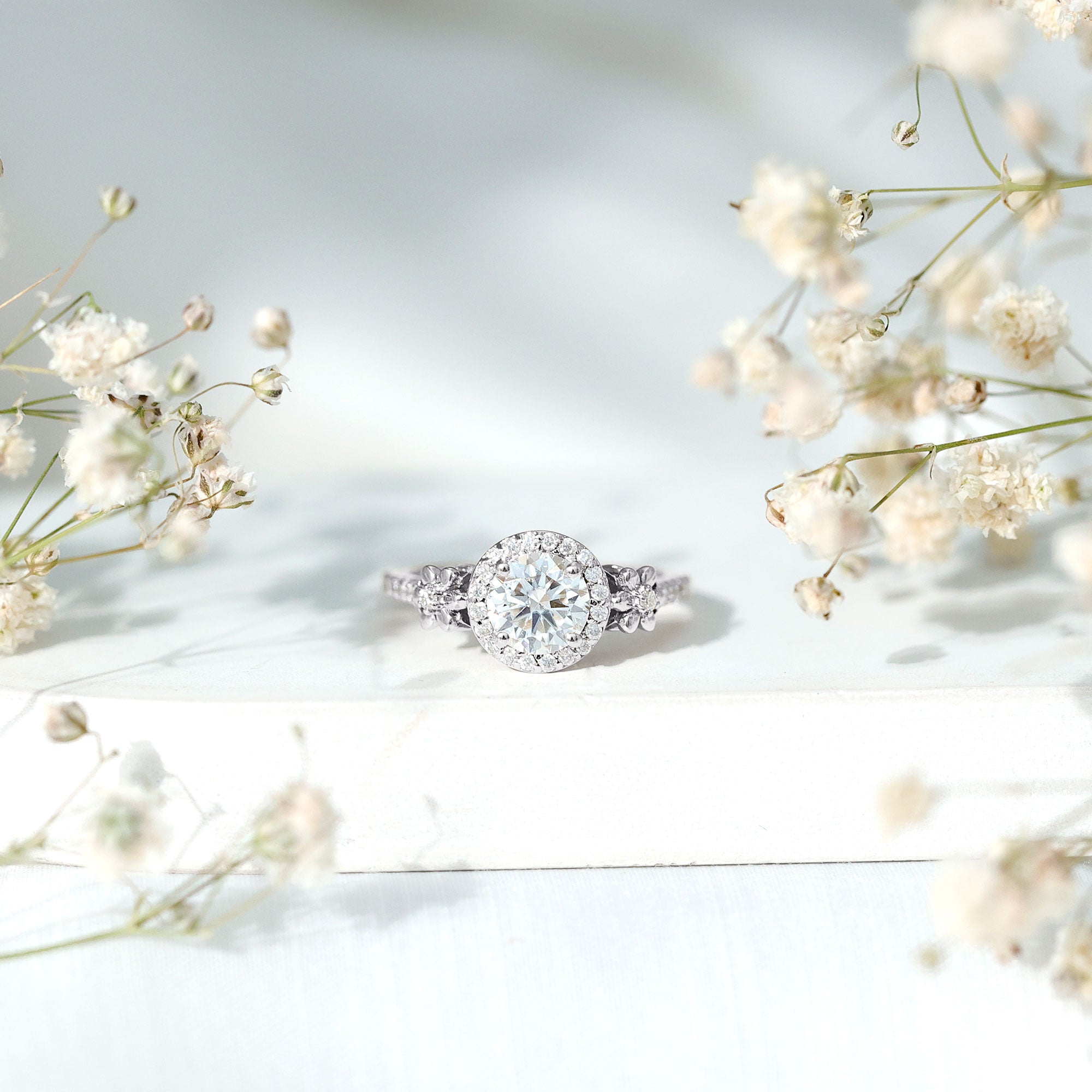 1. Halo Setting: If you intend to maximize sparkle and make it look more fancy and dramatic on your 1 CT moissanite engagement ring.