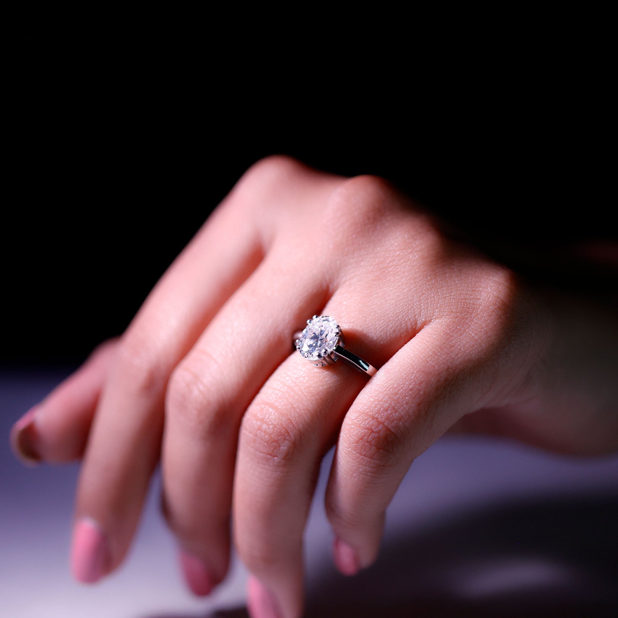 A 2ct ring is a bold, popular size. For everyday comfort, choose a low-profile setting and a secure design such as a well-built prong or bezel-style option, and consider finger coverage with oval/pear shapes.