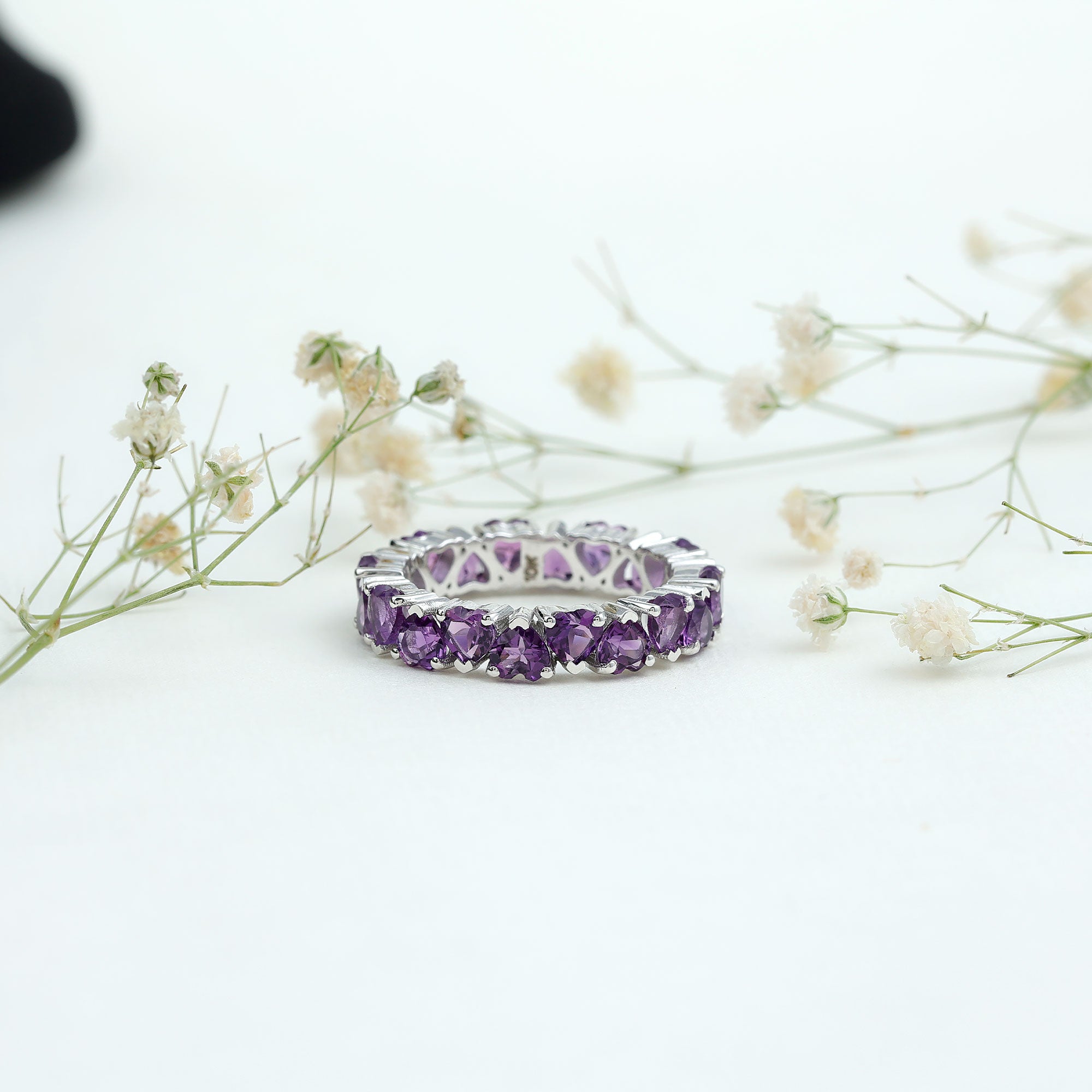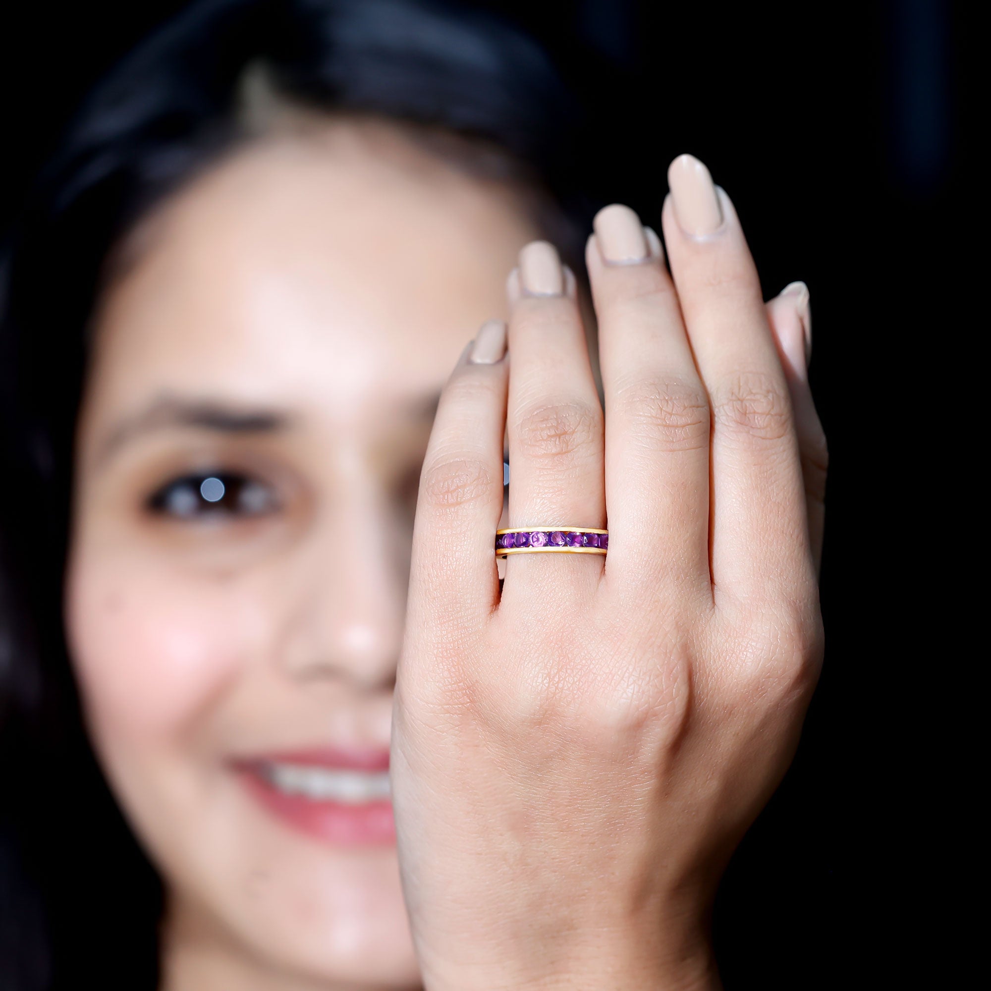 Amethyst eternity rings are the symbol of never-ending love and long-time commitment. Feature precious metal and gemstones set in full circle or half circle around the rings. you can choose occasional styles of eternity rings like amethyst wedding rings, promise rings, and other styles.