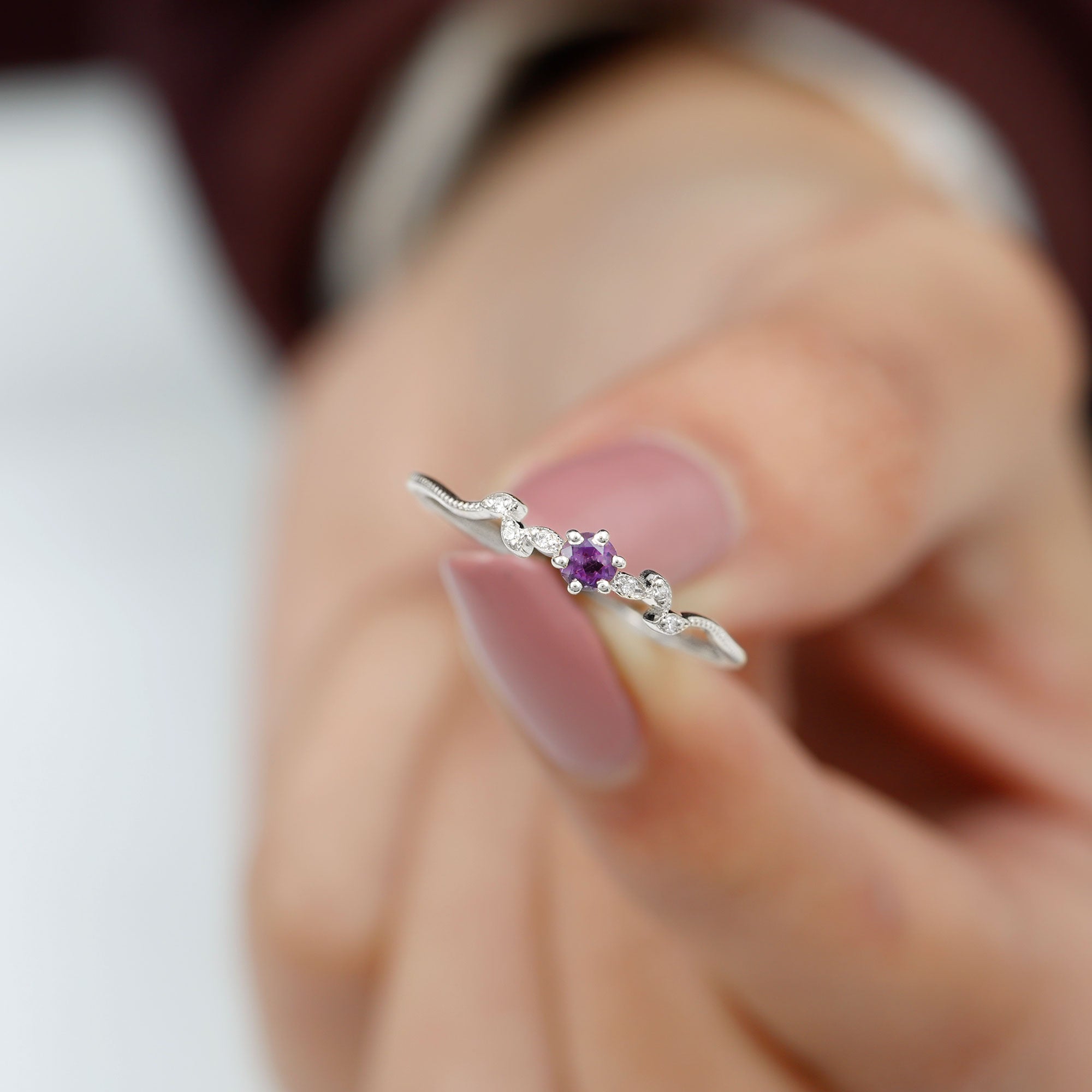 Promise rings are used for making promises or commitments with your partner and friends, and are also known as pre-engagement rings. Promise rings generally have smaller stone sizes than engagement rings so they are less costlier. While amethyst is famous for its calming energies and spiritual powers, making it a perfect choice for promise rings. We can opt for an amethyst gemstone of less than 1 CT for the promise rings in solitaire, eternity, infinity, and many more styles.