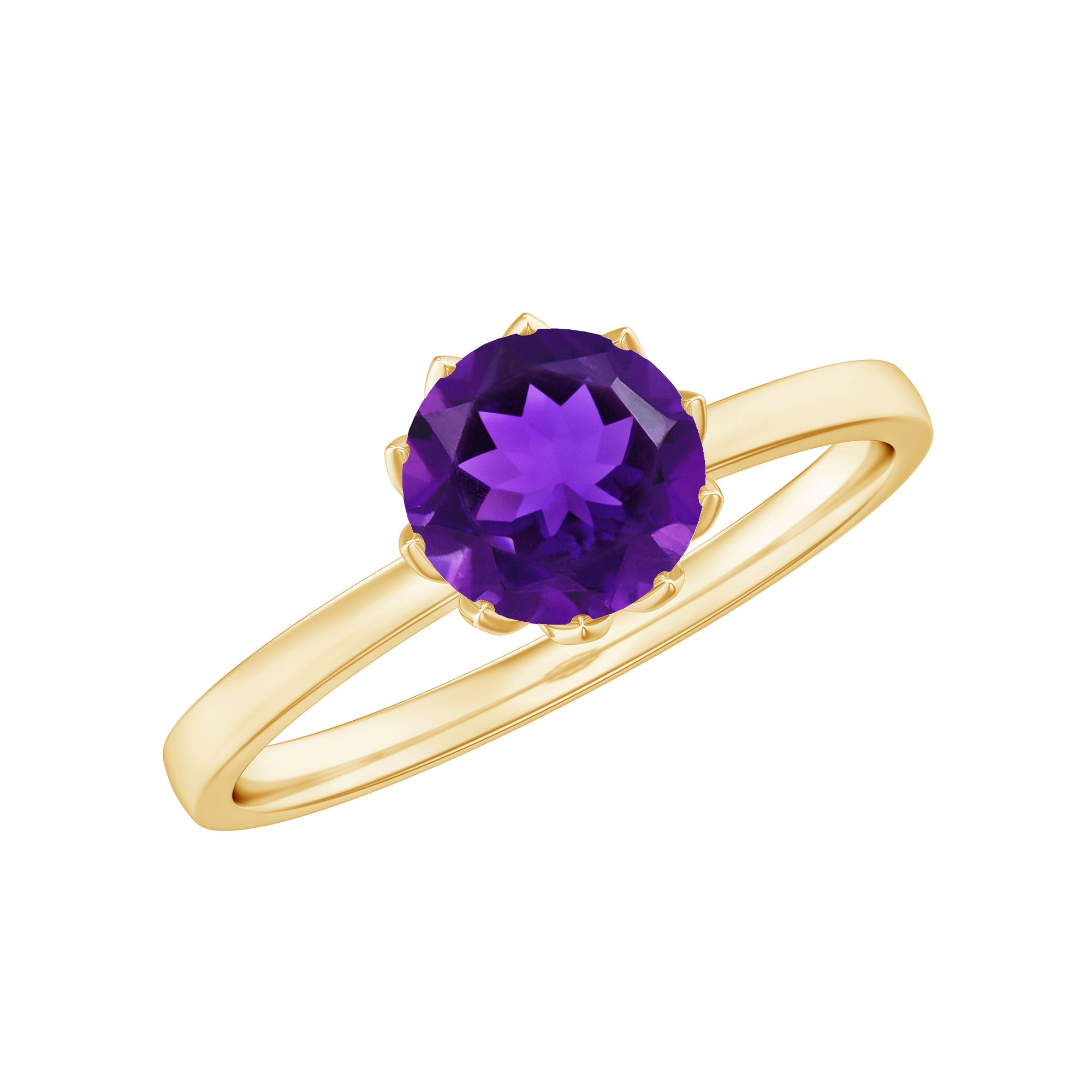 Solitaire amethyst rings mean single center amethyst adorn in a ring. these rings are simple and classic looks for bold personalities used as amethyst stone rings, and engagement rings. Mainly, solitaire rings accentuate the stone's beauty and brilliance while highlighting its metal setting. Our amethyst rings either set in a prong setting or bezel setting, draw attention to its dazzling brightness.