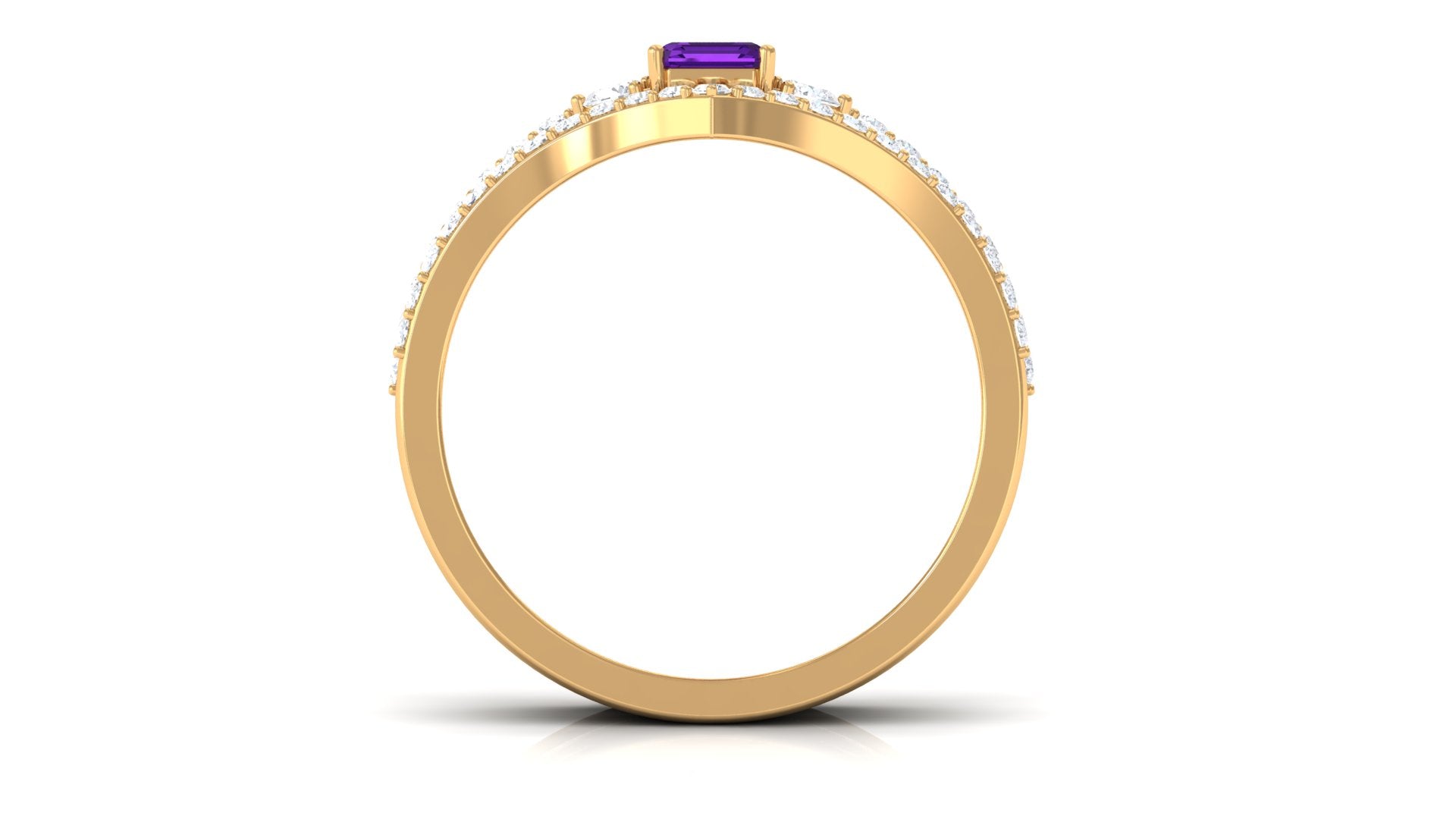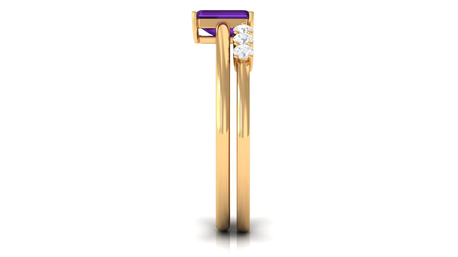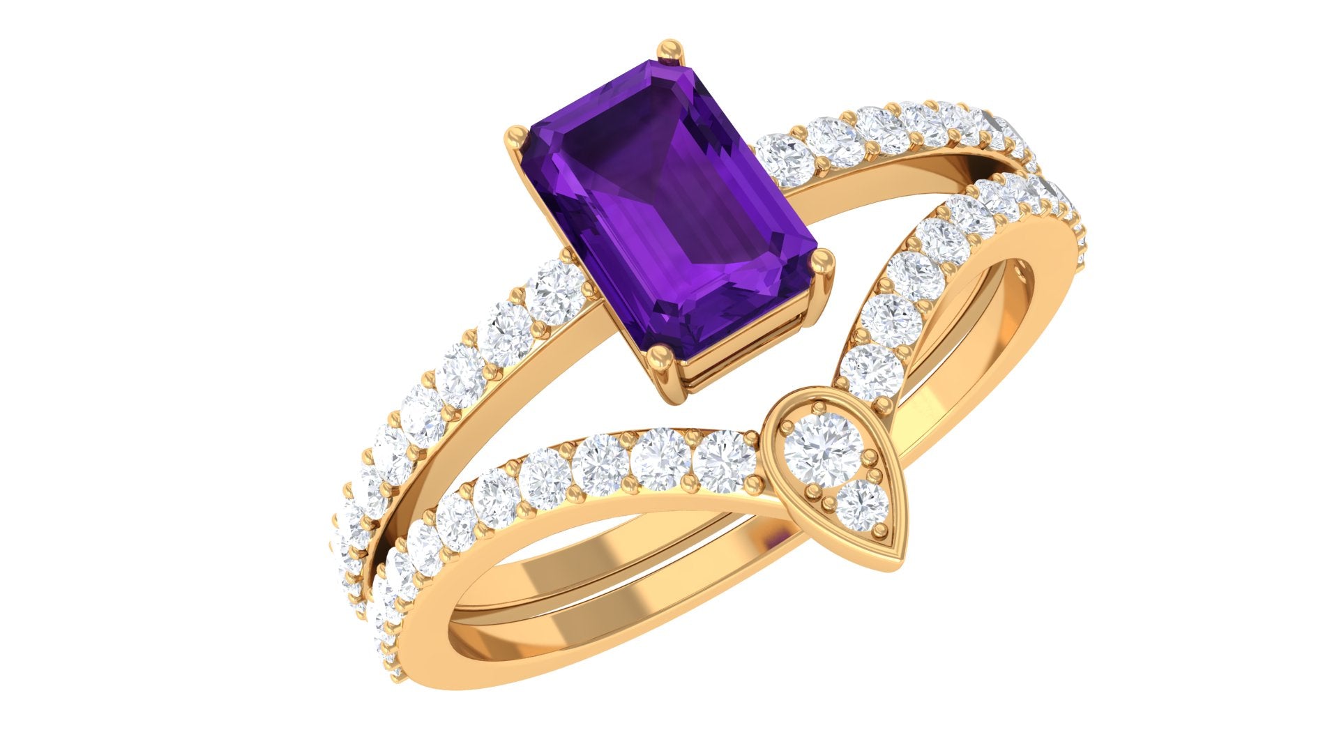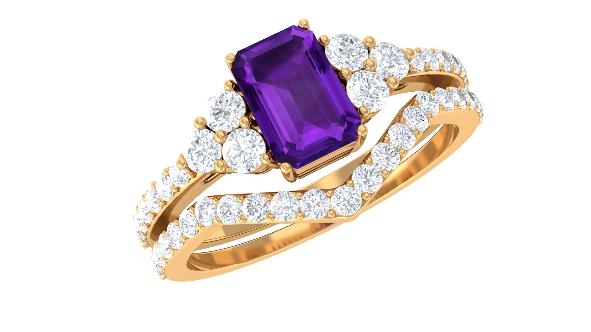 Rosec Jewels’ experienced team of gemologists and artisans are the backbone behind the fine artistic delicacies of our collection of wedding rings for women. After thorough examination of all the quality factors, an amethyst finds it way to wedding rings. An exotic range of amethyst rings for wedding by different combinations of gemstone shapes, gemstone settings and gold embellishments comes handy.