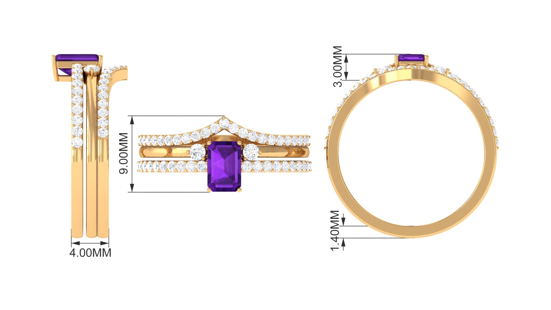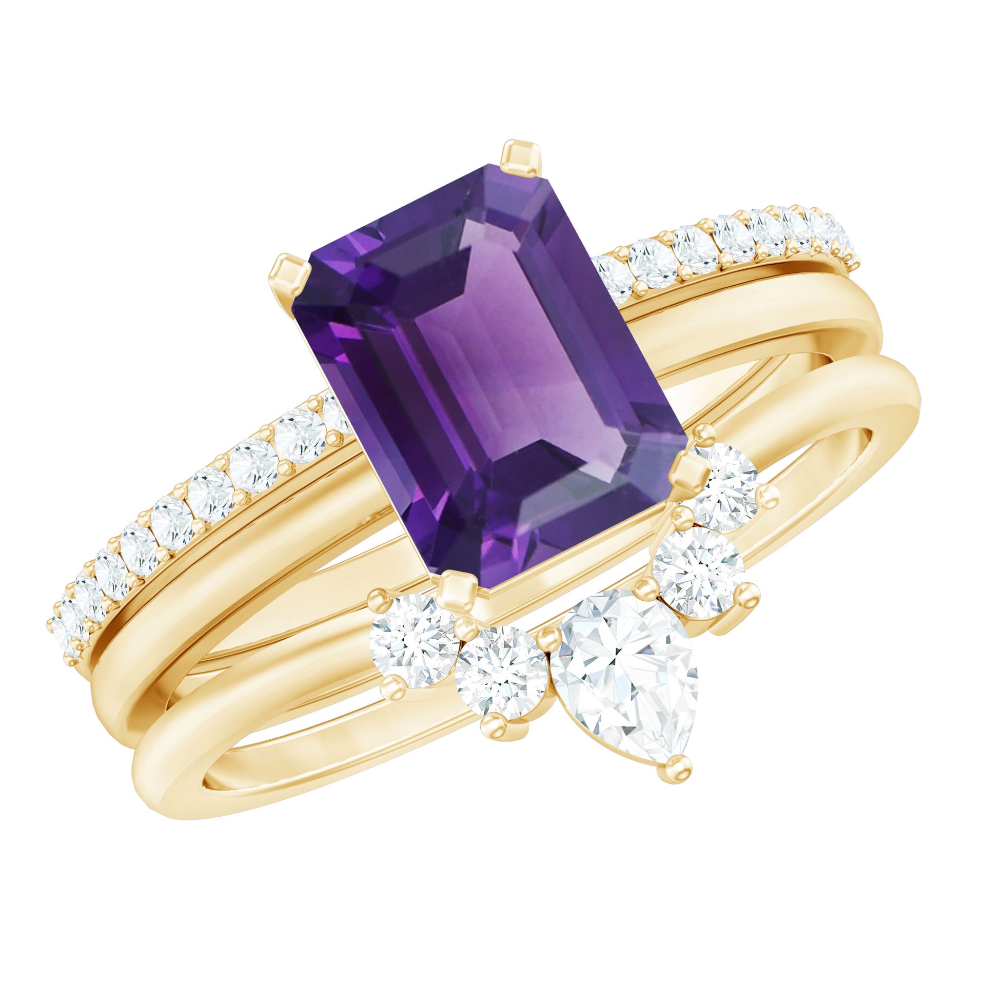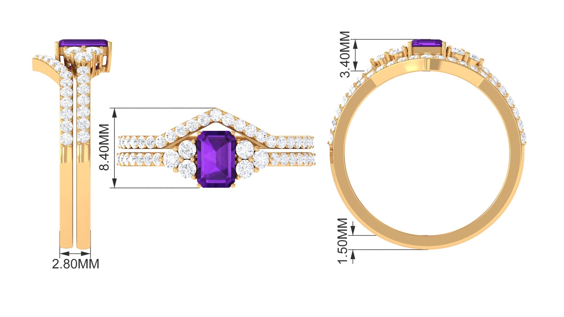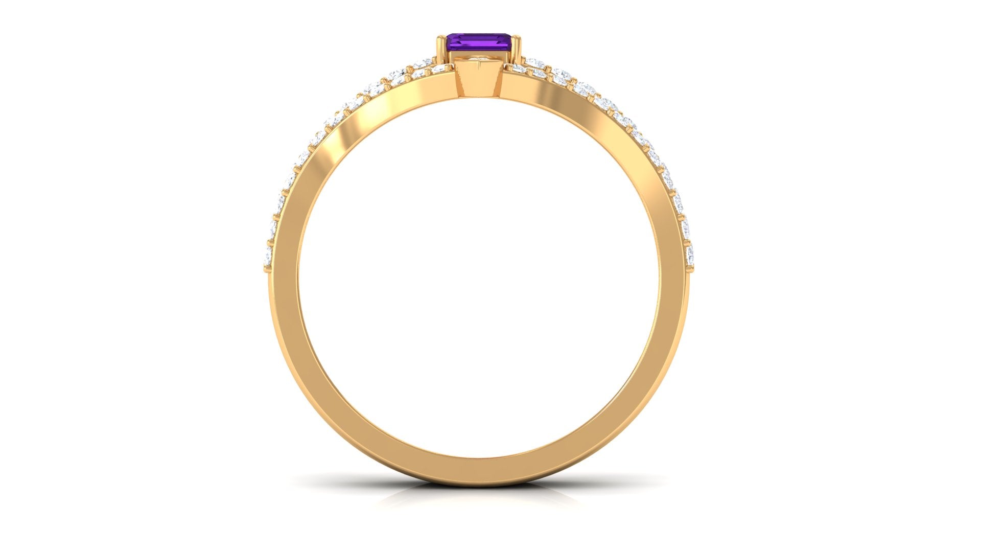 Rosec Jewels’ experienced team of gemologists and artisans are the backbone behind the fine artistic delicacies of our collection of wedding rings for women. After thorough examination of all the quality factors, an amethyst finds it way to wedding rings. An exotic range of amethyst rings for wedding by different combinations of gemstone shapes, gemstone settings and gold embellishments comes handy.
