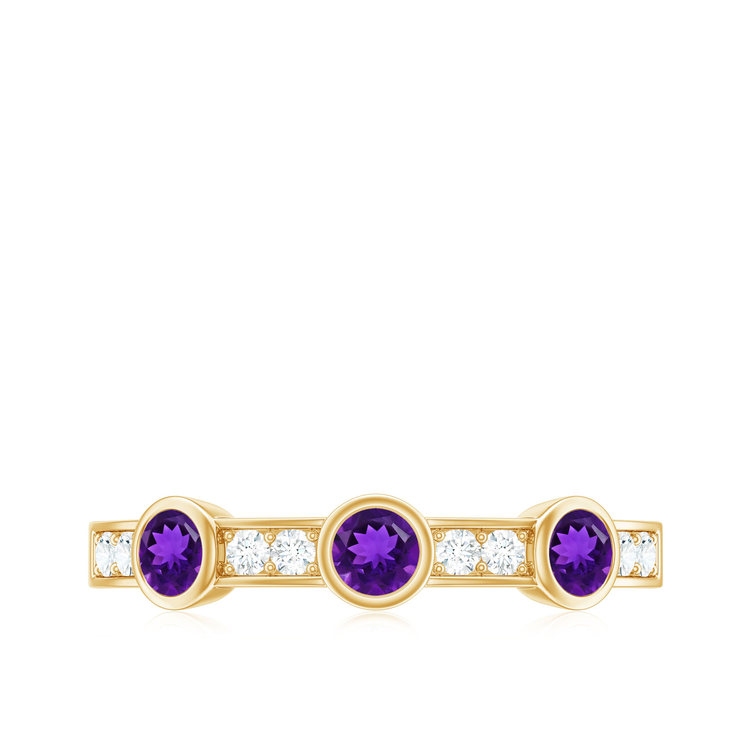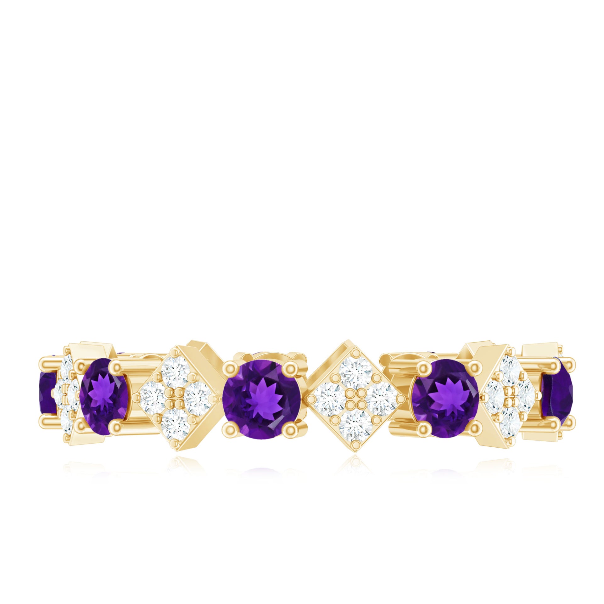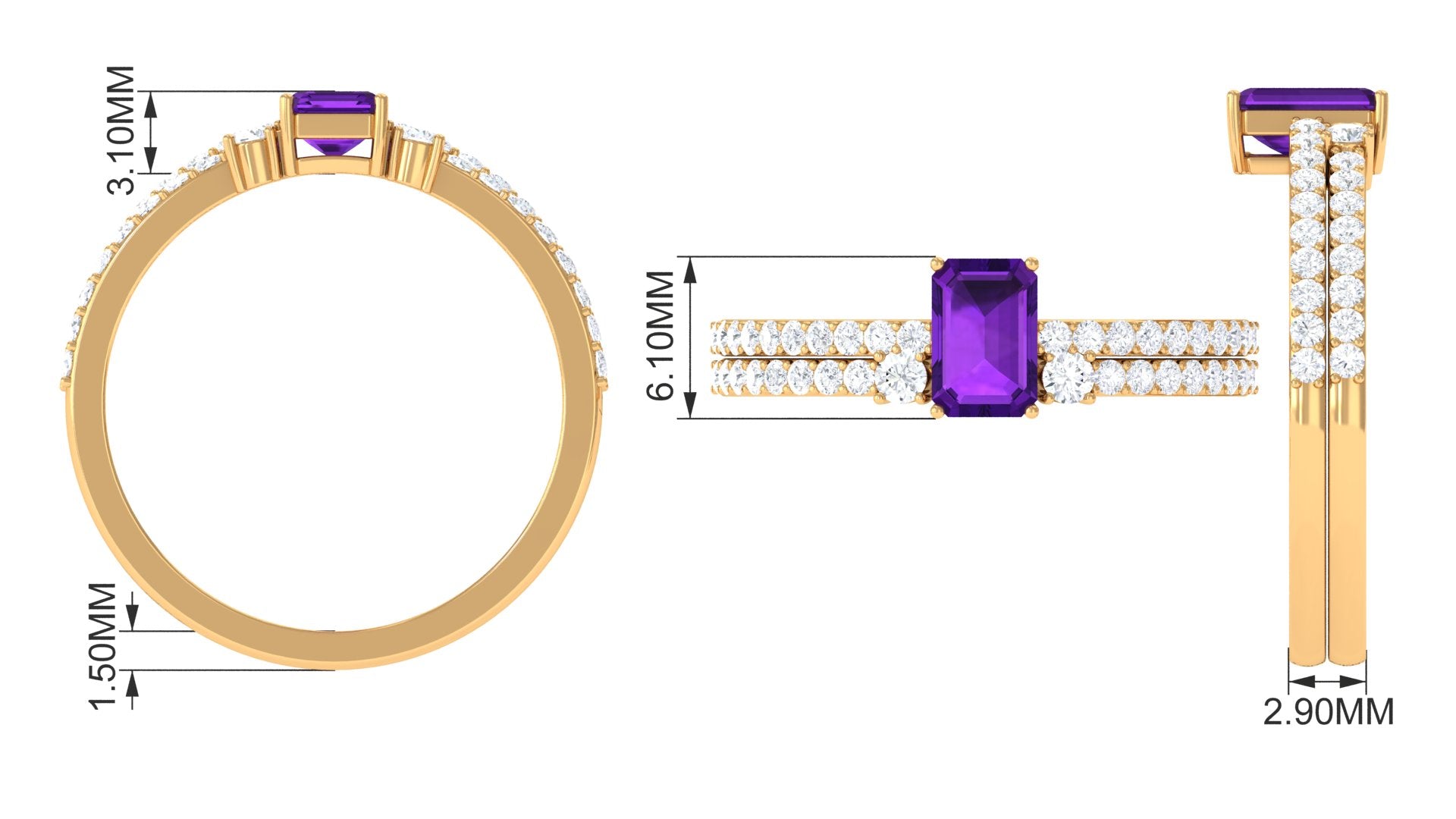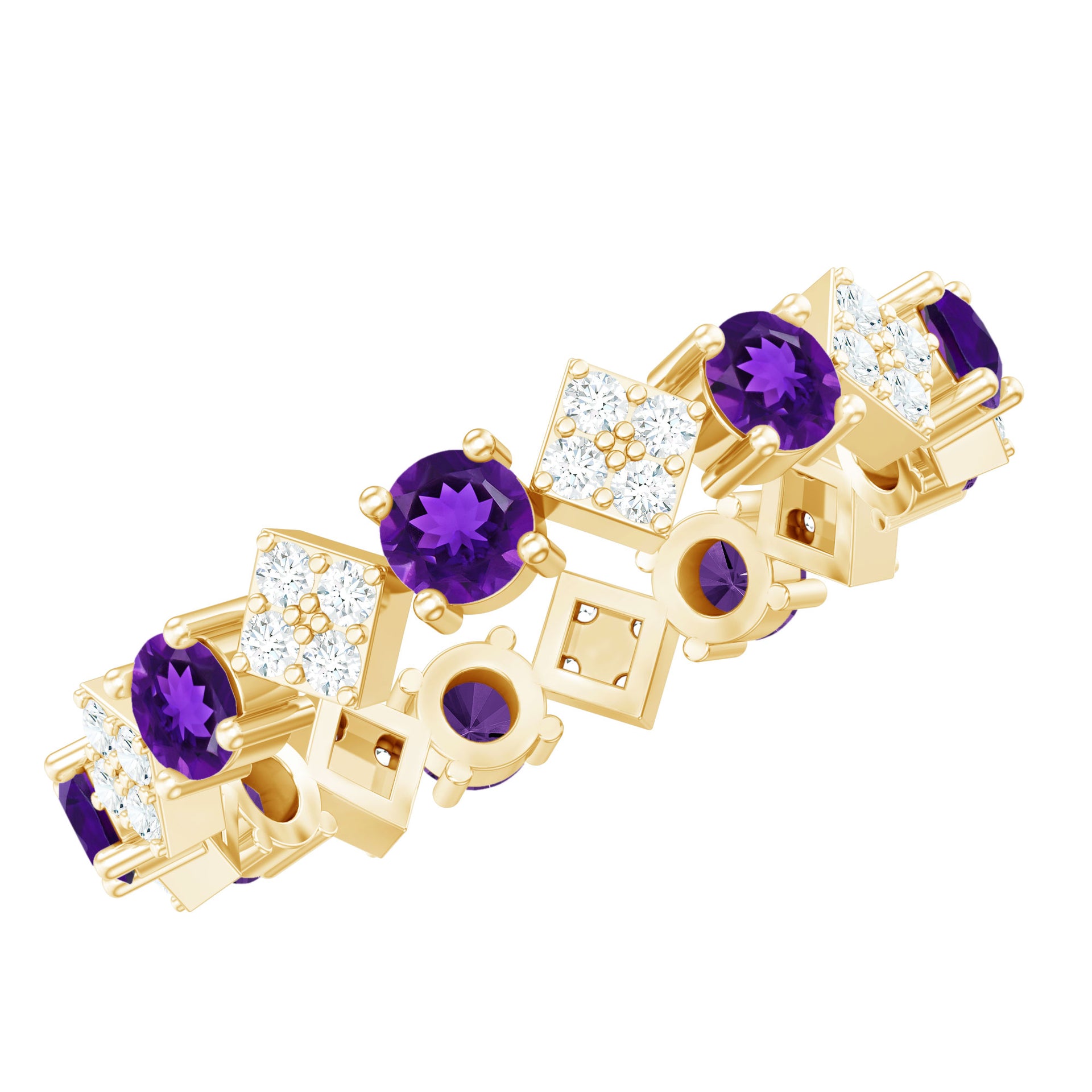 Rosec Jewels’ experienced team of gemologists and artisans are the backbone behind the fine artistic delicacies of our collection of wedding rings for women. After thorough examination of all the quality factors, an amethyst finds it way to wedding rings. An exotic range of amethyst rings for wedding by different combinations of gemstone shapes, gemstone settings and gold embellishments comes handy.