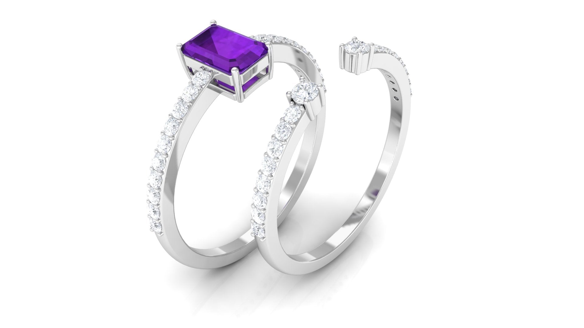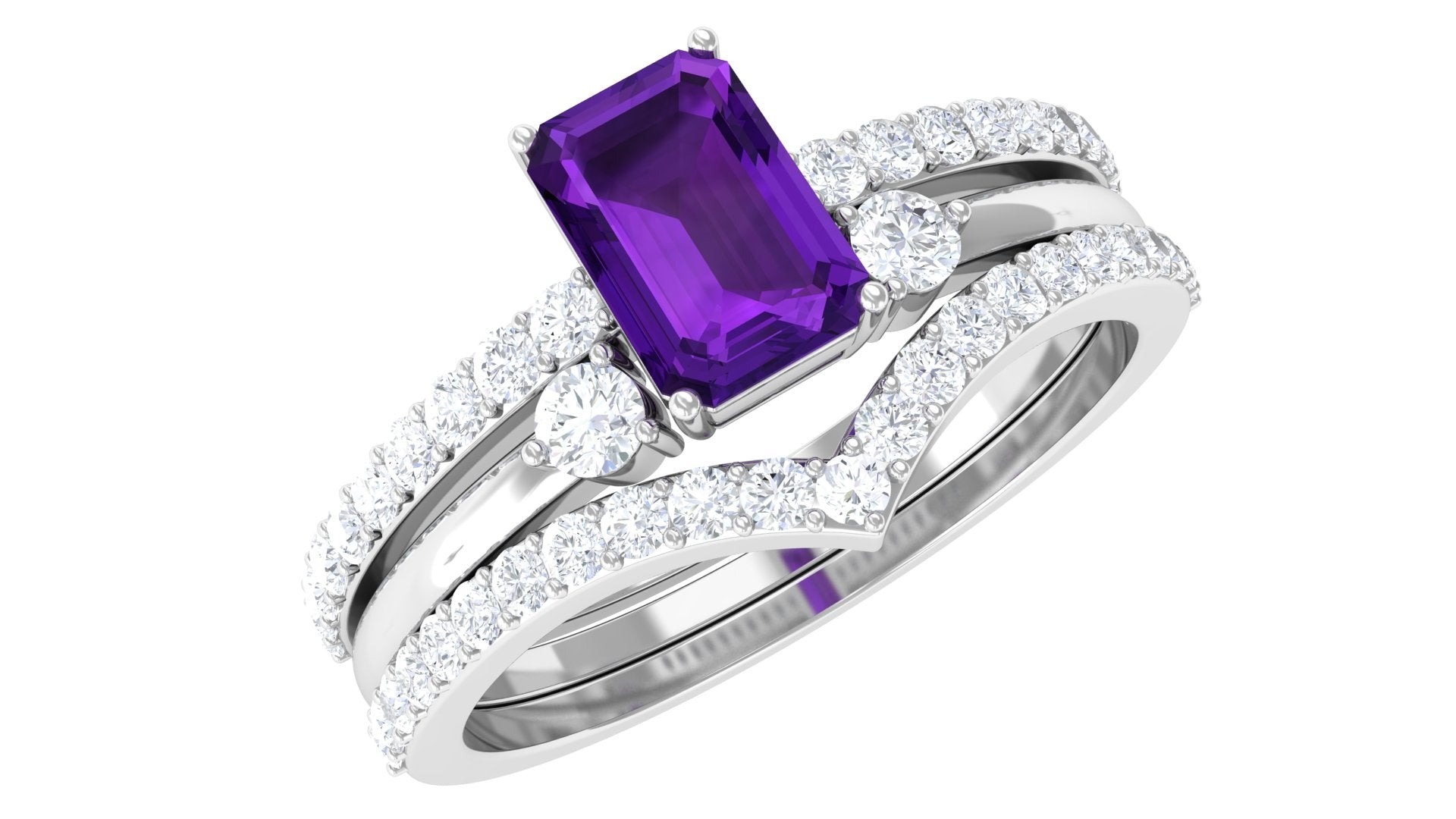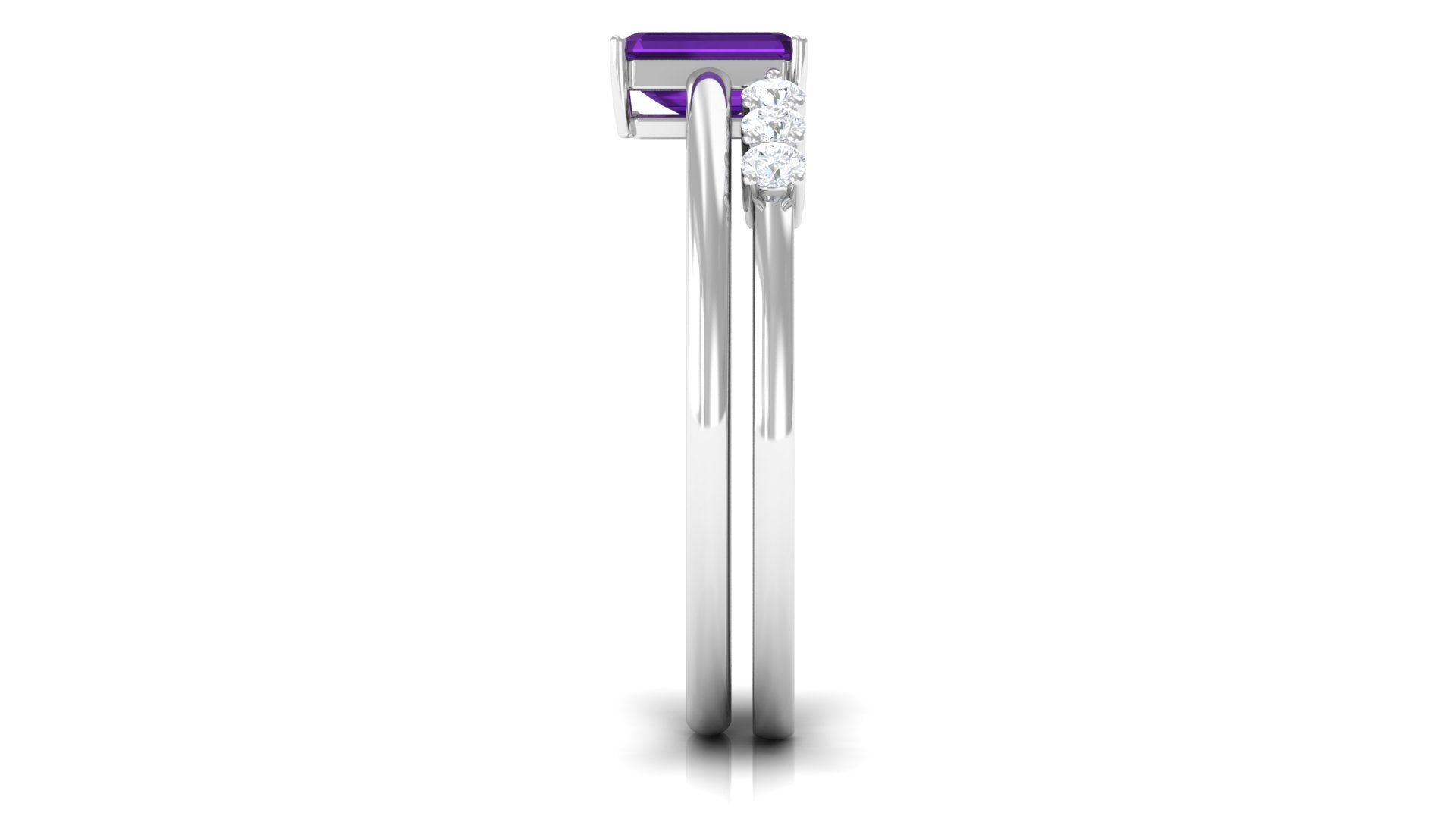 Let our amethyst wedding rings bear witness to your marriage vows with its alluring purple hues to let her heart go merry. The adorable purple gemstone of the quartz family has been a growing popularity among jewelers to craft fantastic amethyst wedding bands. The birthstone of February is believed to have positive influence on the wearer born in February. The considerable hardness and the mesmerizing beauty make amethyst a suitability when it comes to designing non-traditional amethyst wedding ring set for couples.