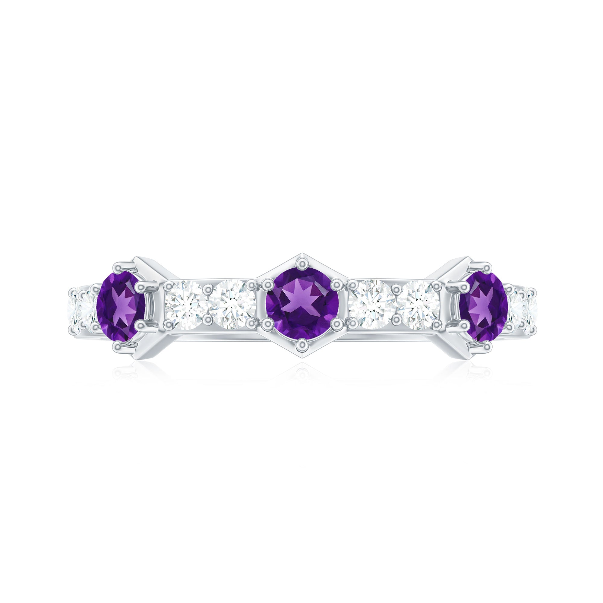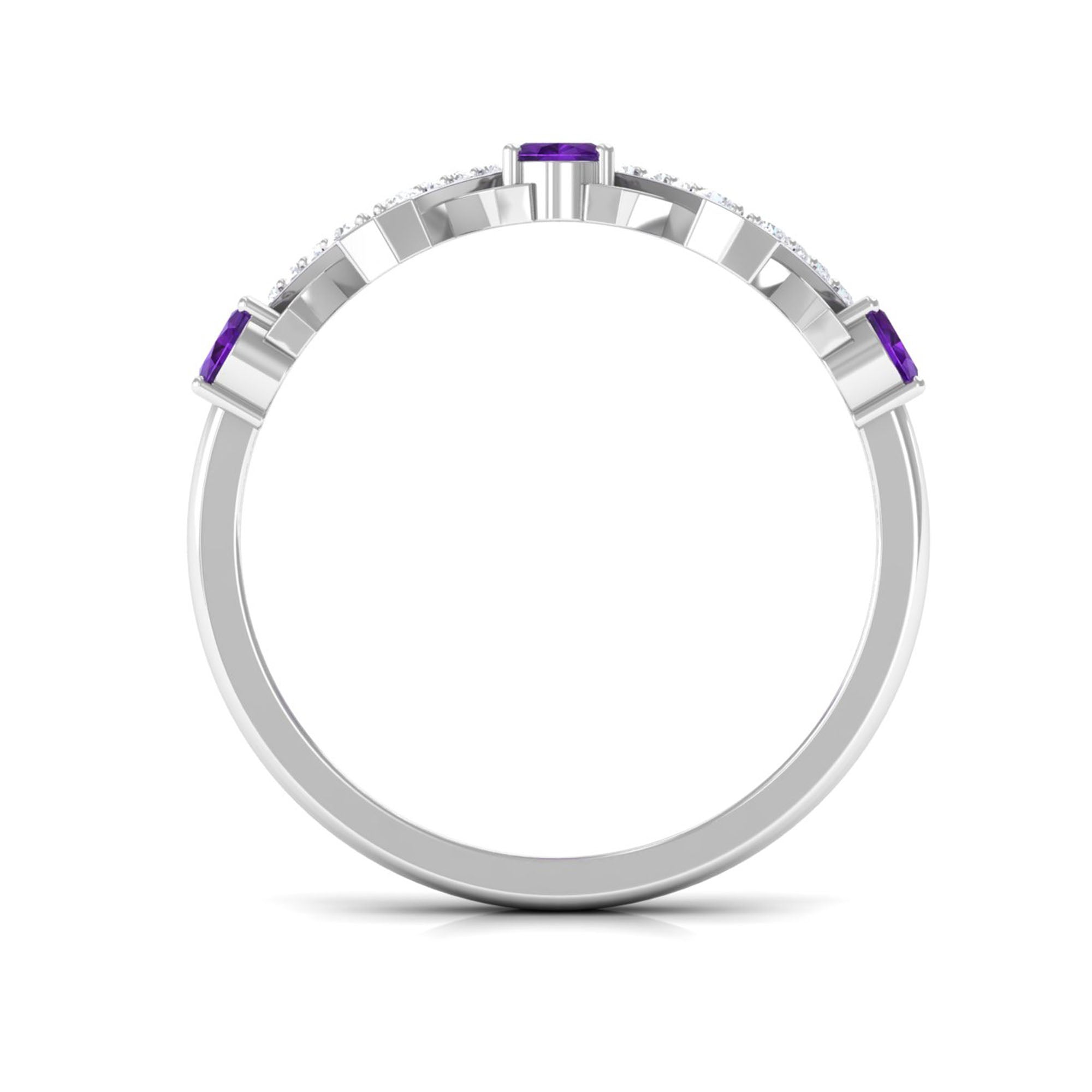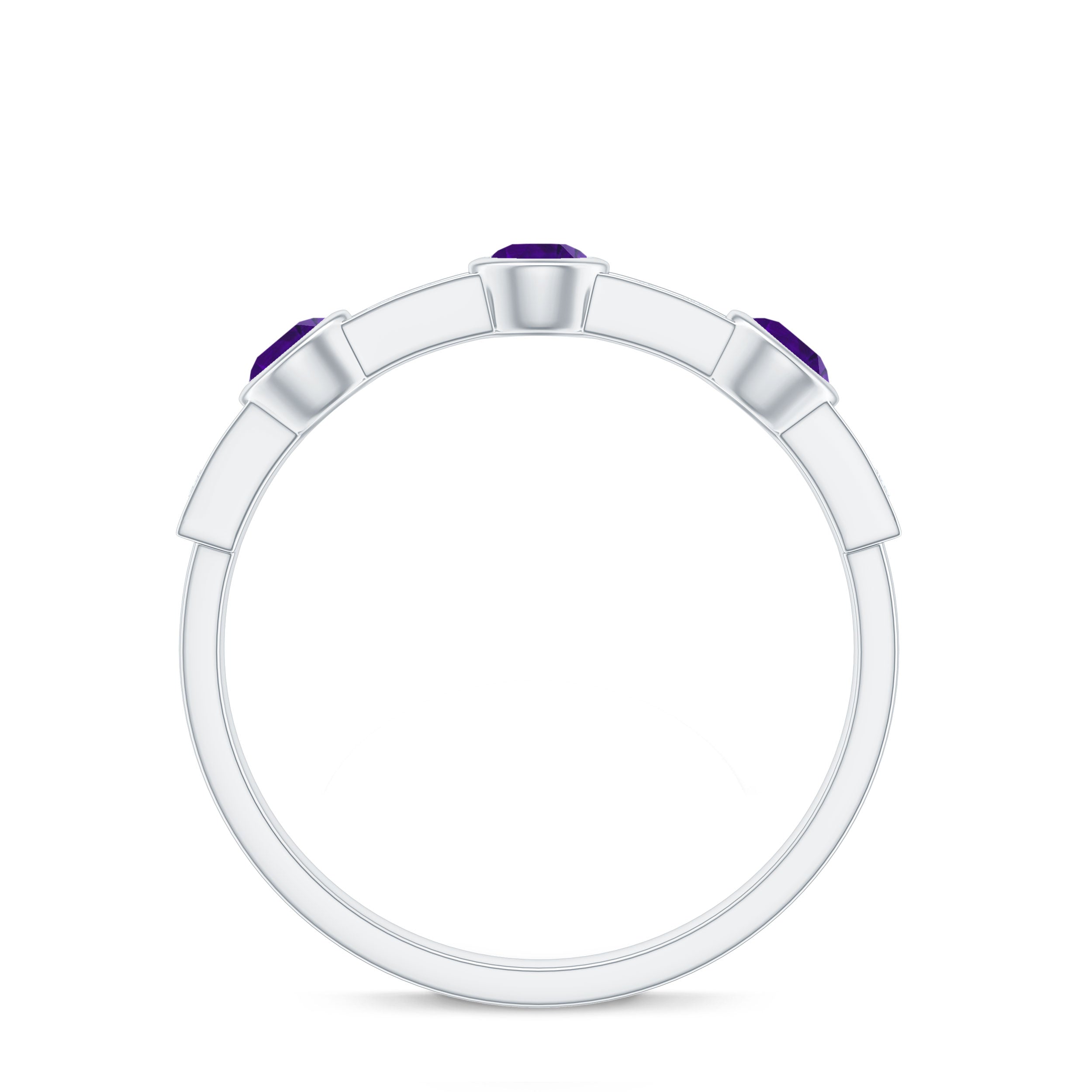 Let our amethyst wedding rings bear witness to your marriage vows with its alluring purple hues to let her heart go merry. The adorable purple gemstone of the quartz family has been a growing popularity among jewelers to craft fantastic amethyst wedding bands. The birthstone of February is believed to have positive influence on the wearer born in February. The considerable hardness and the mesmerizing beauty make amethyst a suitability when it comes to designing non-traditional amethyst wedding ring set for couples.