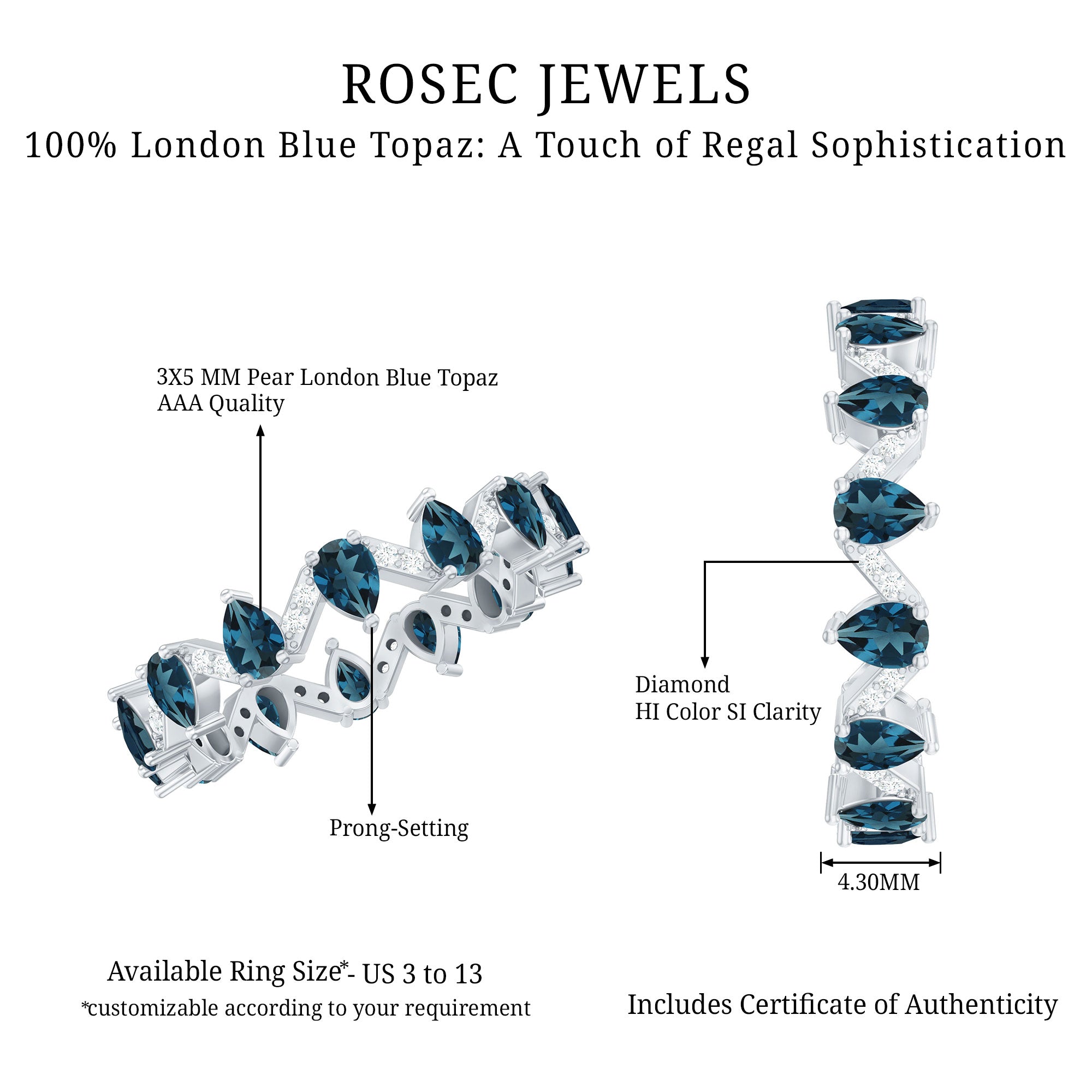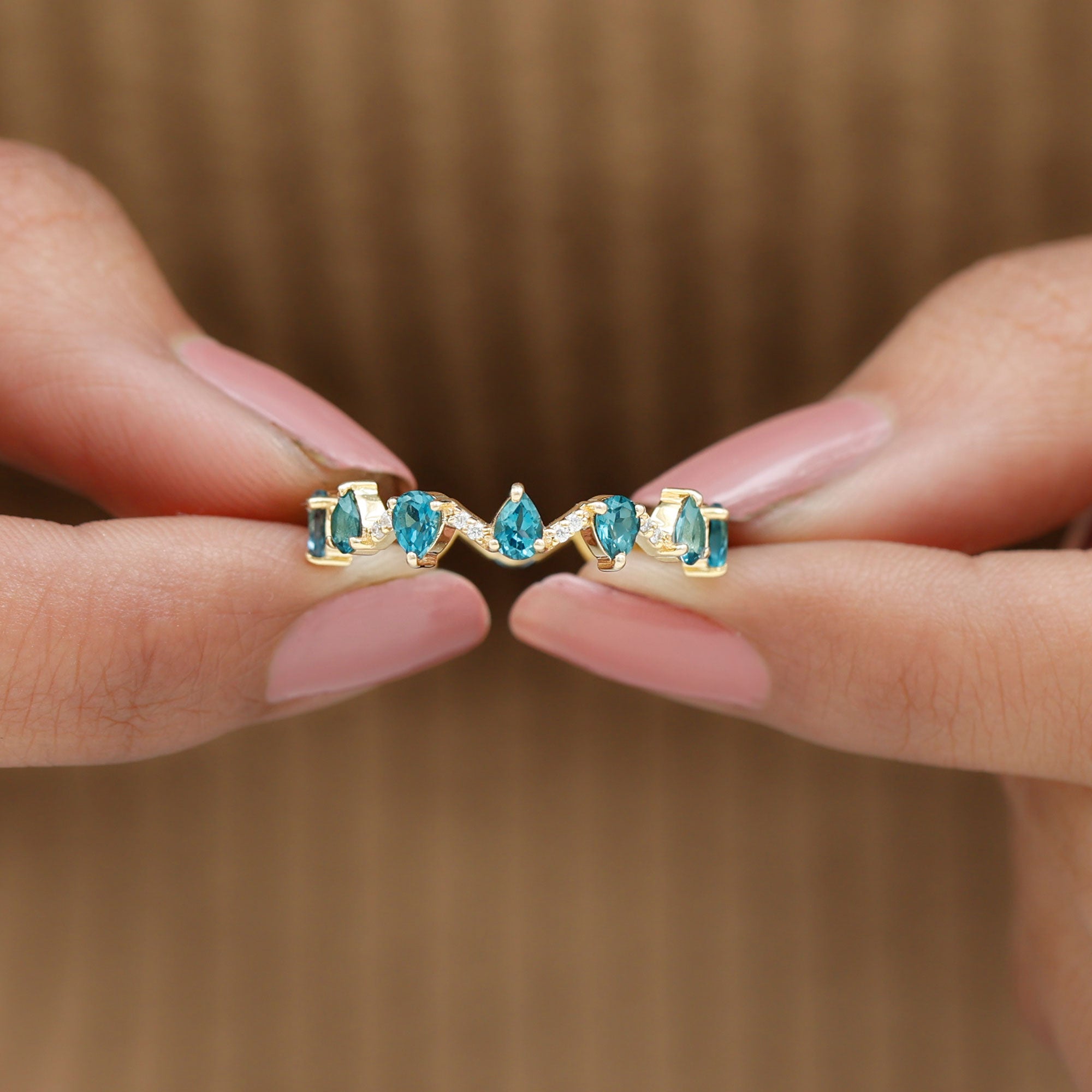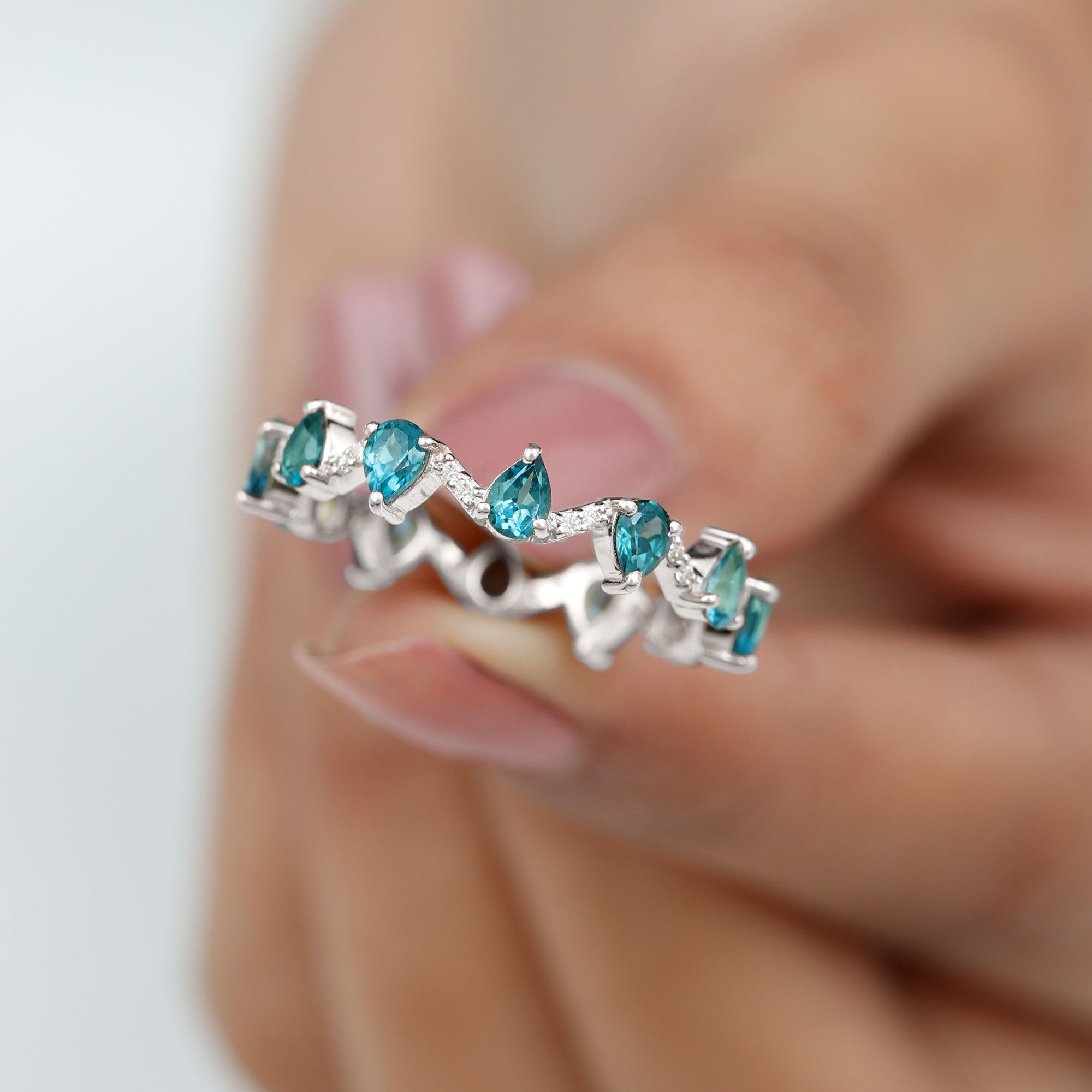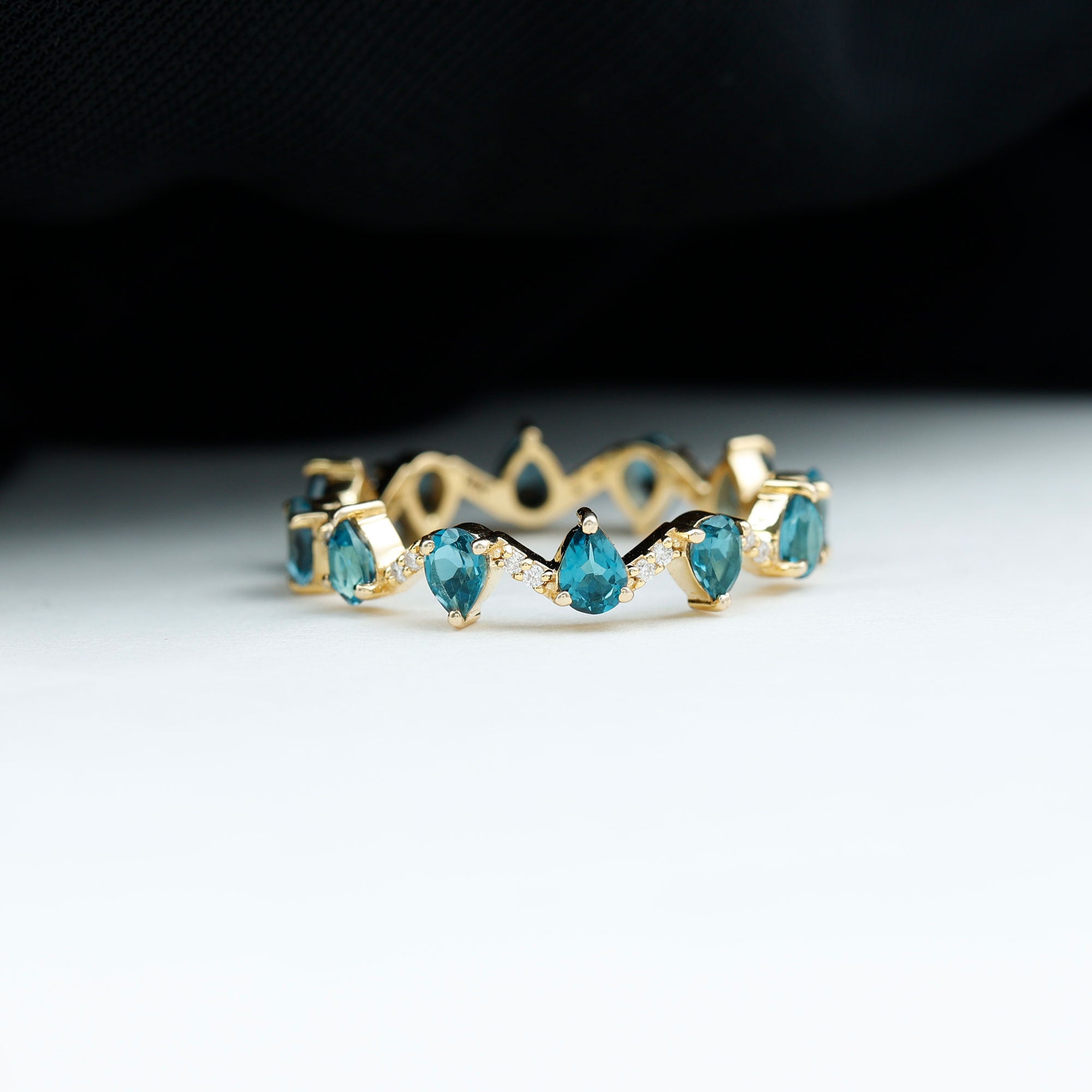Almost all shining and colored gemstones, whether natural or lab-grown can be used in designing anniversary bands for her. Diamonds, moissanites, sapphires, rubies, emeralds, amethysts, pearls, garnets, topaz and more with different symbolic meanings are some of the popular choices for anniversary rings.