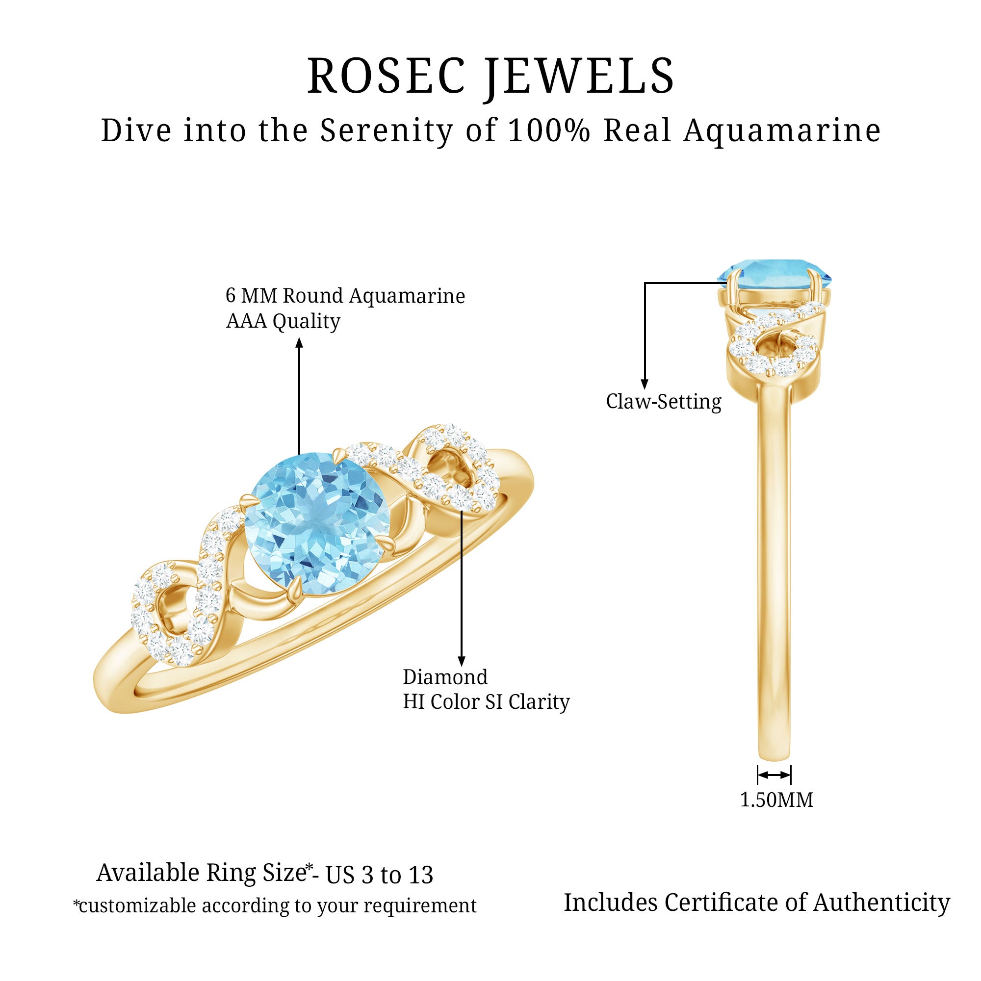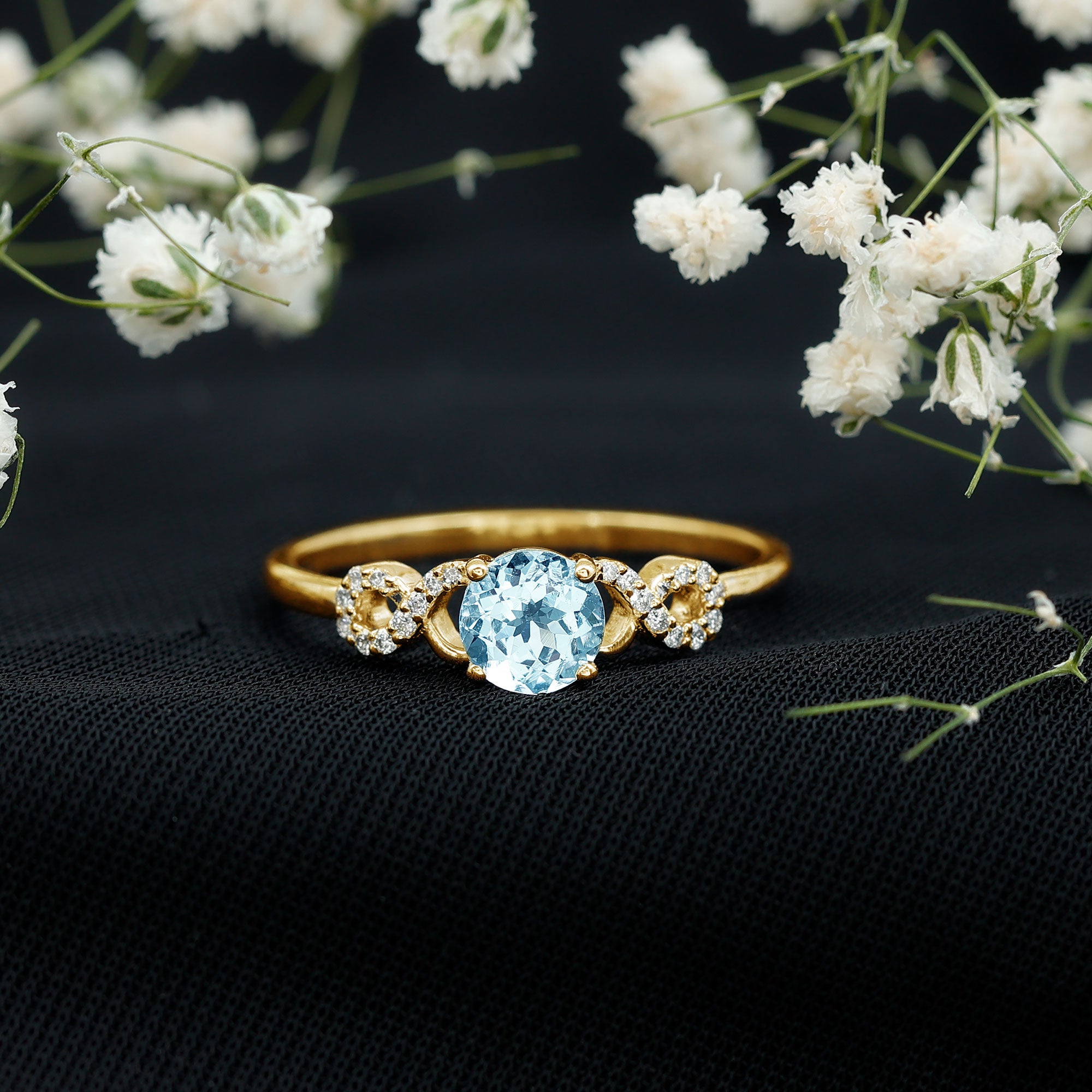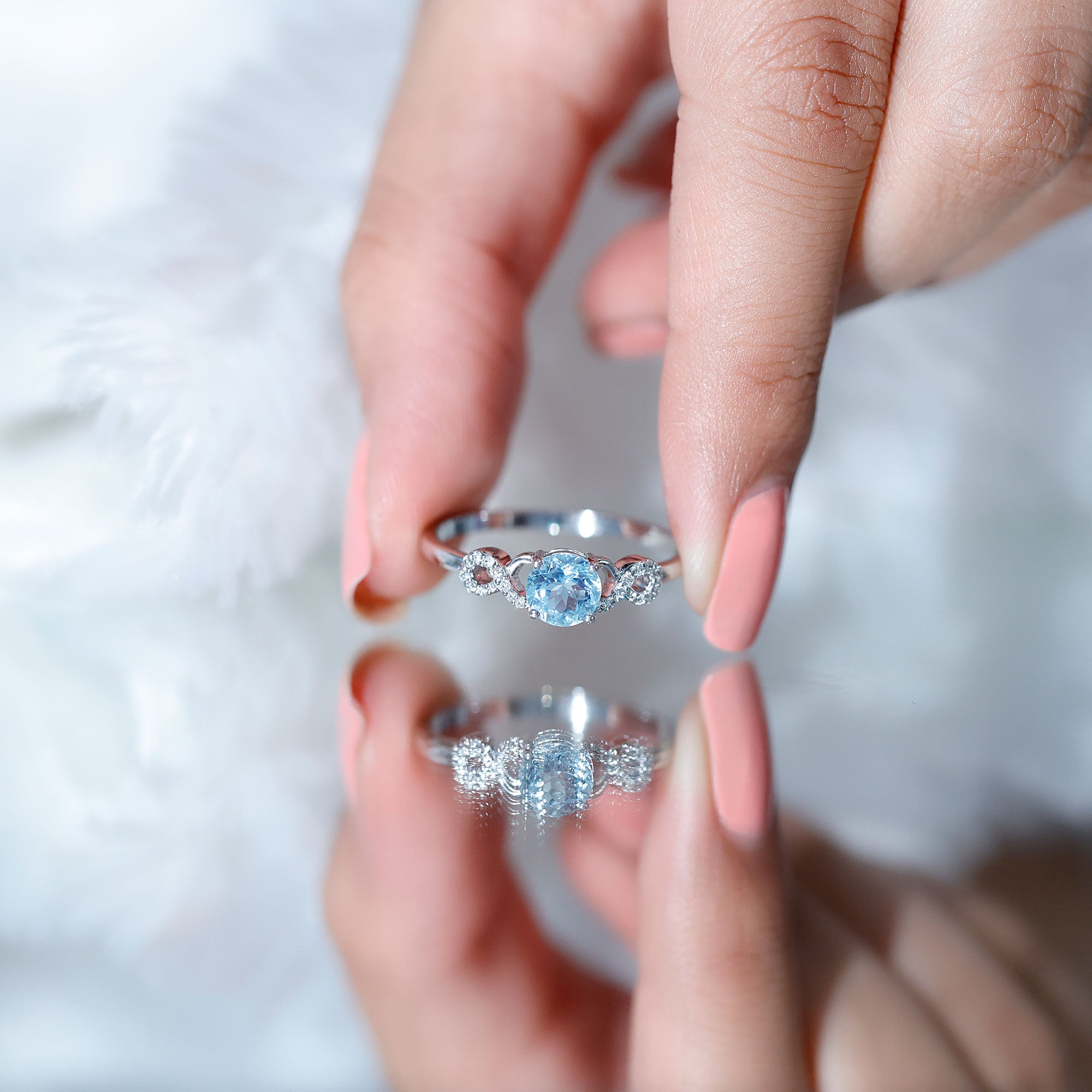 • Round Aquamarine Engagement Rings: - A popular pick, the round cut accentuates the beauty and sparkle of the aquamarine gem, and may create a stylish and classic look. The round shape also has the benefit of not chipping off over time.
