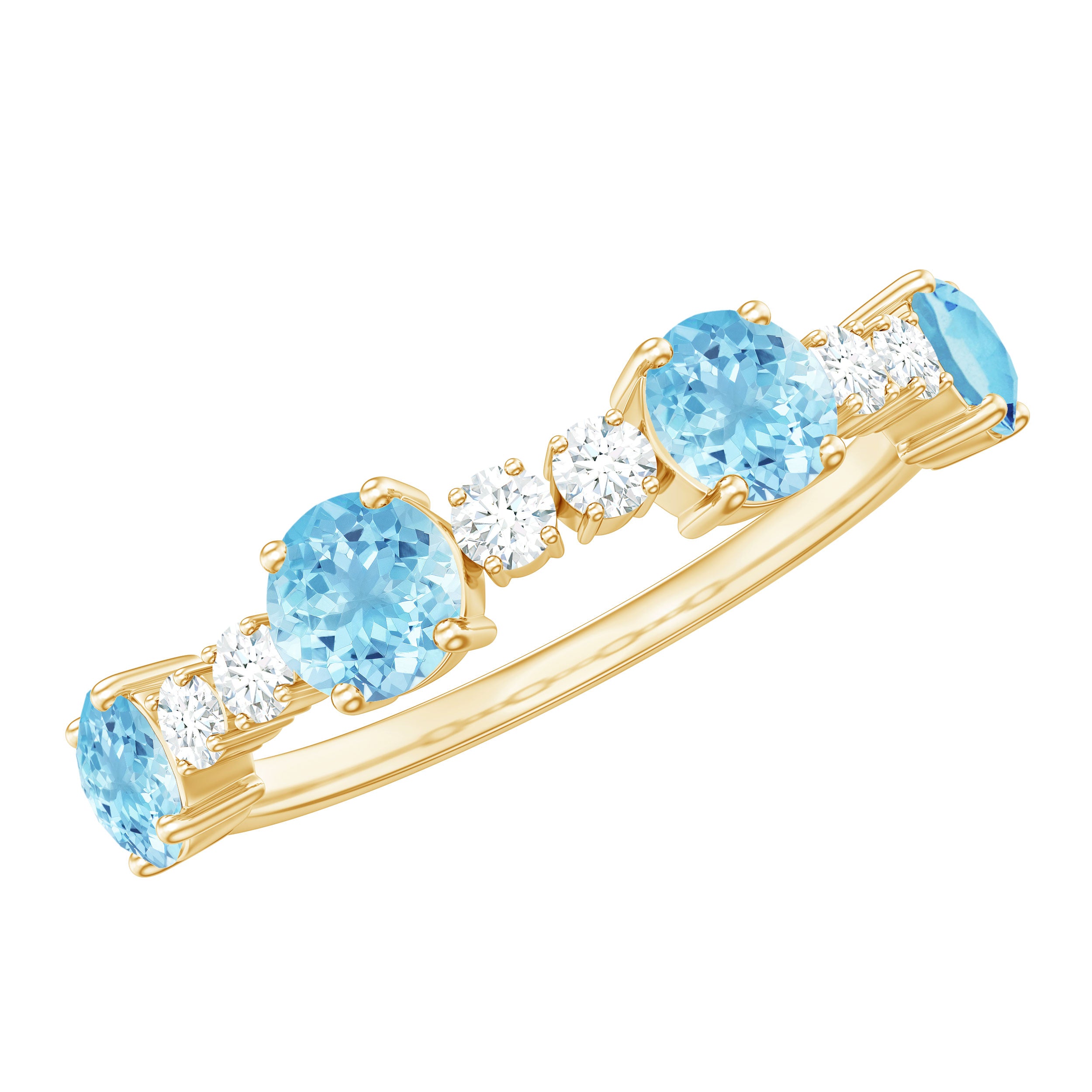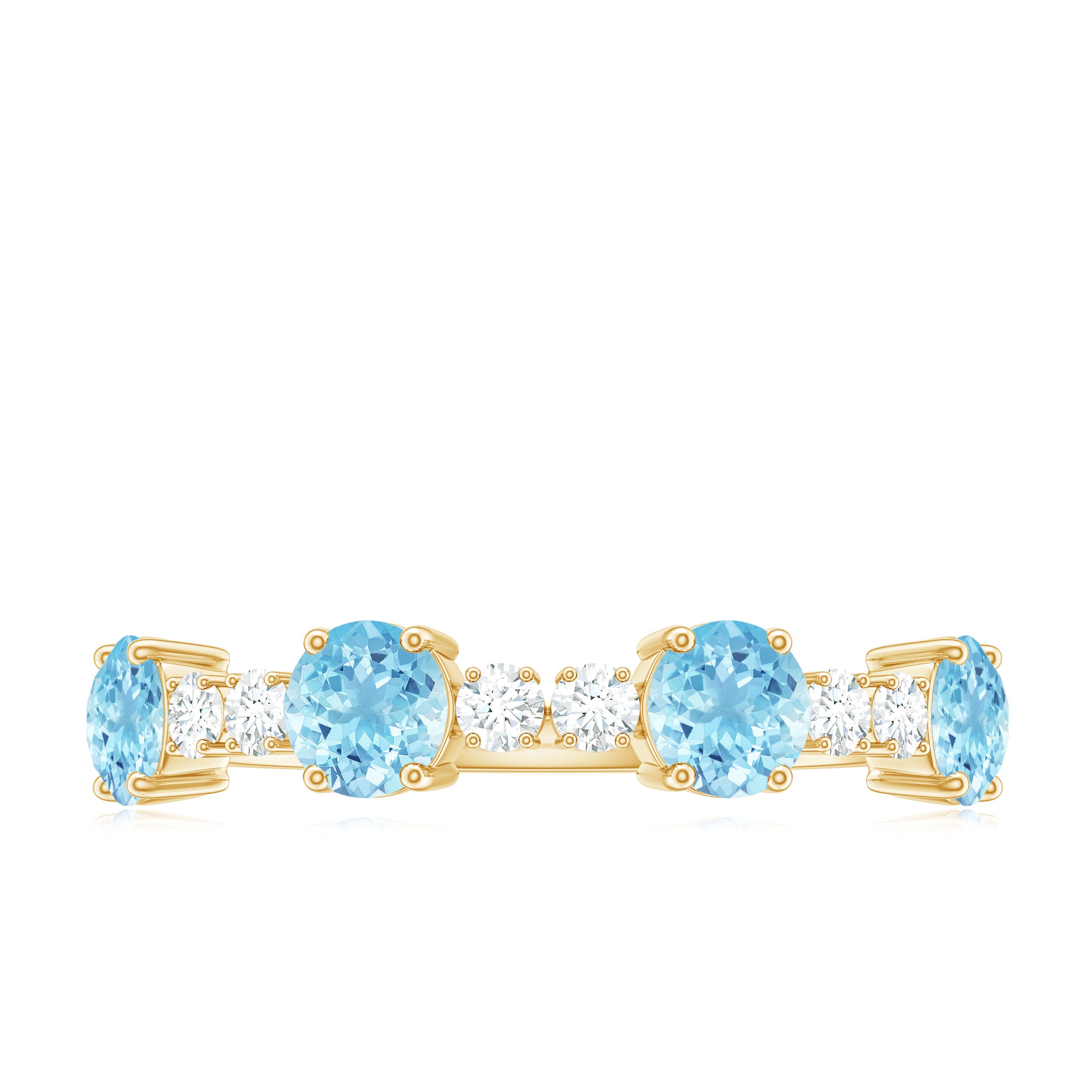 • Aquamarine Eternity Bands: - These eternity bands are truly designed to complement your pre-existing engagement ring in a precise manner. They embody mesmerizing allure and highlight blue hues of aquamarine encircling the entire ring. Whether chosen in white gold or yellow gold metal, aquamarine eternity bands elevate any style, adding an expression of lasting love.