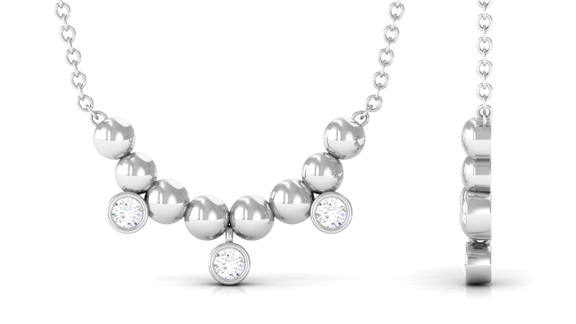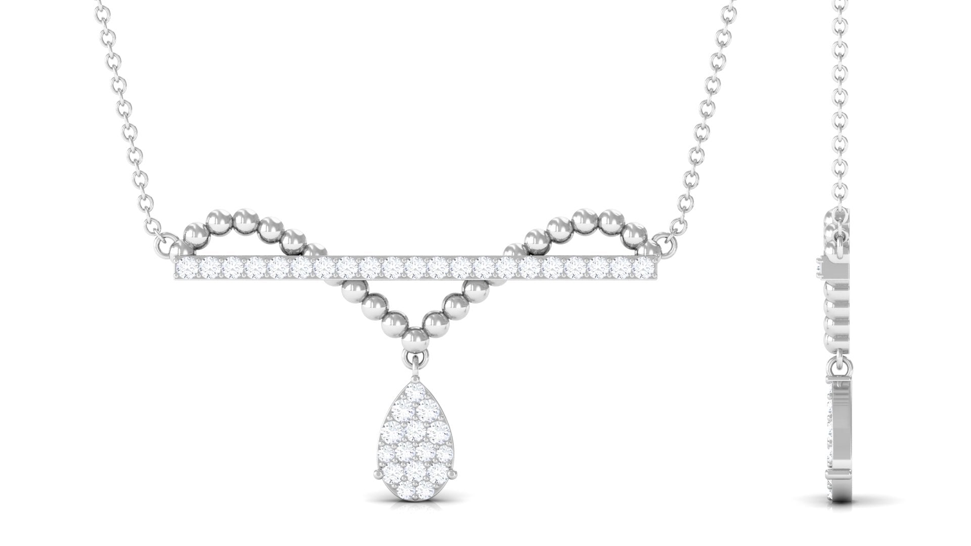 A necklace that has a bar attached to a chain. Bar necklaces can come in many styles, like a simple bar or curved bar, a horizontally set bar, or a vertical bar. They can be plain or adorned with gemstones.